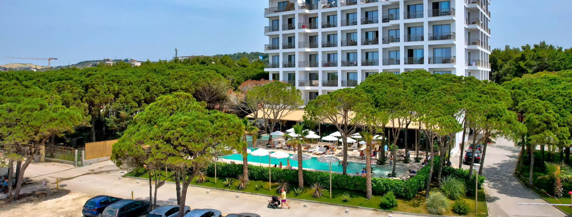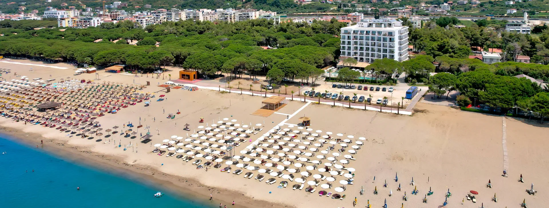 Położenie: Jest to nowy, wybudowany w 2021 roku, 5-gwiazdkowy hotel. Położony bezpośrednio przy długiej, piaszczystej, zagospodarowanej plaży, w turystycznej dzielnicy Golem na południe od centrum Durres, jednego z najważniejszych miast albańskiego wybrzeża. Do centrum Durres można dostać się transportem publicznym (ok. 2 EUR, przystanek autobusowy ok1 km od hotelu) lub taksówką (ok 10-15 EUR). Plaża: Obiekt usytuowany jest przy liczącej ponad 10 km złocistej, piaszczystej plaży. Znajdują się przy niej liczne hotele i pensjonaty. Hotelowe leżaki na plaży dostępne są dla gości bezpłatnie. Ręczniki przy basenie i na plaży dostępne za pozostawieniem depozytu. Do dyspozycji gości: Całodobowa recepcja, lobby, windy, restauracja główna, bar w lobby, bar przy basenie, taras słoneczny, basen zewnętrzny (maksymalna głębokość 140 cm), przechowalnia bagażu, parking. Wyżywienie: All inclusive: śniadania (7:00 - 10:00), lunche (12:00 - 14:00), obiadokolacje (19:00 - 21:00) w formie bufetu (dania kuchni międzynarodowej oraz albańskiej). Przekąski 17:00 – 18:00. Napoje bezalkoholowe (woda, soki, herbata, kawa filtrowana), oraz lokalne napoje alkoholowe (piwo, wódka, gin, brandy, wino) dostępne od 10:00 do 22:00. Program sportowy i animacyjny: Hotelposiada siłownię oraz dodatkowo płatne SPA z wyborem zabiegów i masaży. Niewielki plac zabaw dla dzieci. Internet: WI-FI na terenie hotelu bez dodatkowej opłaty. Kategoria lokalna: ***** Naszym zdaniem: Nowy, 5-gwiazdkowy hotel w doskonałej cenie. Na wyróżnienie zasługuje długa, piaszczysta plaża oraz możliwość wykupienia pokoi połączonych wewnętrznymi drzwiami.