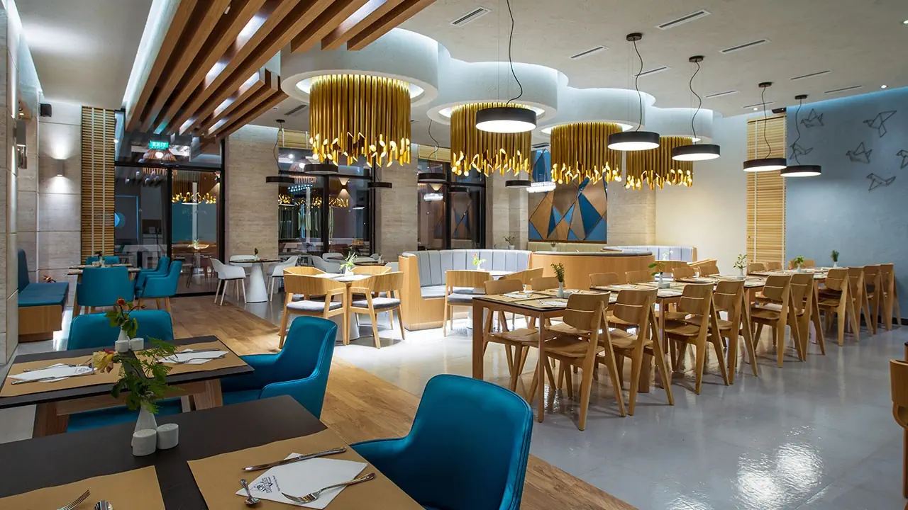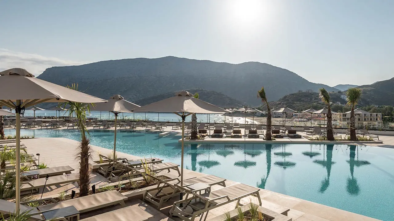 Położony tarasowo tuz przy piaszczystej plaży, zachwyca pięknymi widokami oraz oryginalną estetyką wnętrz. Na gości czeka wyśmienite jedzenie, bogata infrastruktura rekreacyjna i duży aquapark, co czyni go idealnym miejscem dla rodzin z dziećmi.