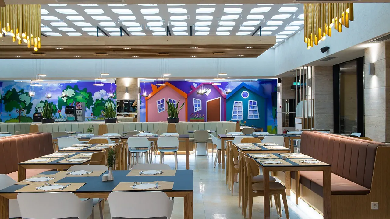 - Aquapark z 6 basenami i zjeżdżalniami wodnymi- Bezpośrednio przy prywatnej plaży hotelowej- Bogata oferta kulinarna, w tym 3 restauracje tematyczne- Nowoczesna i w pełni wyposażona siłownia- Strefa dla dzieci w restauracji głównej wraz z dedykowanym menu- Doskonałe zaplecze sportowe (boisko wielofunkcyjne, siatkówka plażowa, tenis, mini golf itp.)
