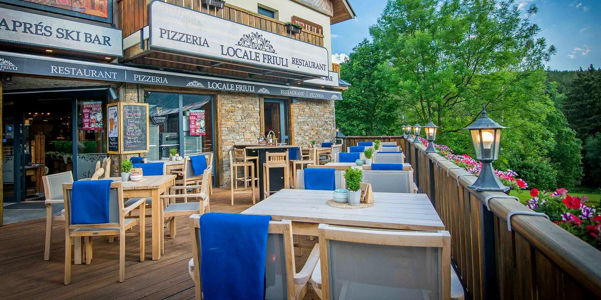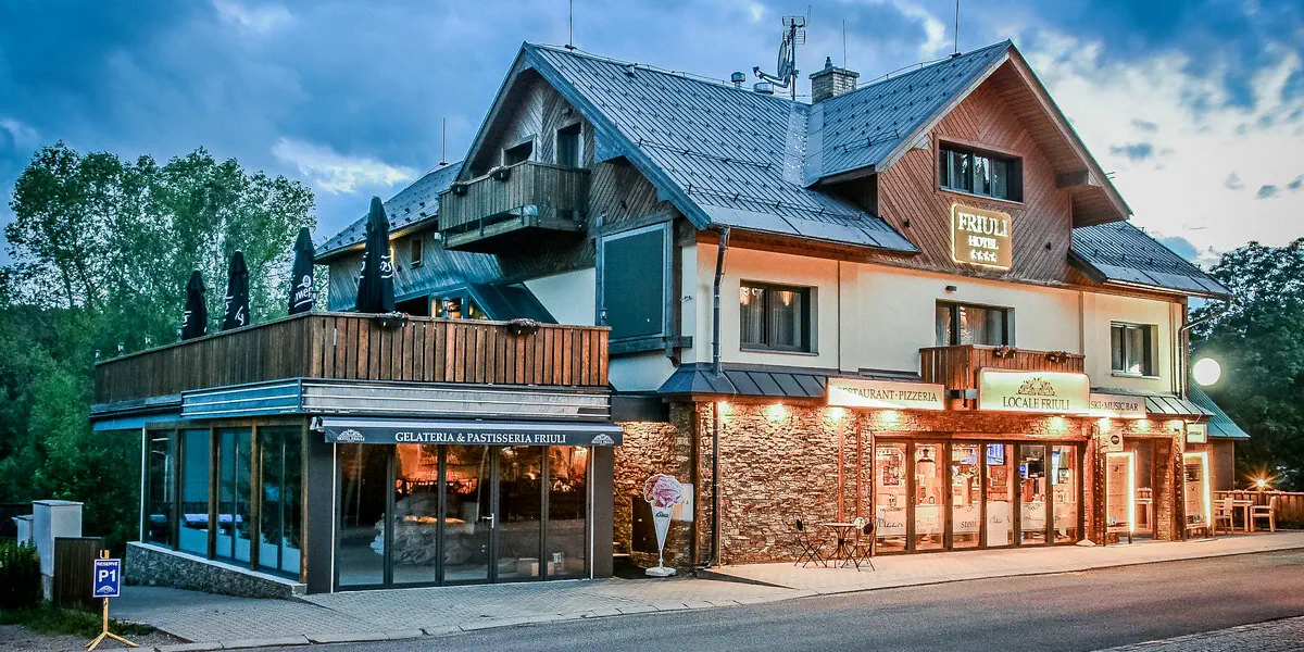 Czterogwiazdkowy hotel Friuli jest położony w centrum Harrachova. Ma fantastyczny widok na Czarcią Górę, u stóp której leży miasto, z jej ośrodkiem narciarskim i szlakami turystycznymi. Hotel wyróżniają pokoje z prywatną fińską sauną i wanną z hydromasażem. Udogodnienia: Sauna, Bar / restauracja, Pobyt z pupilem, Parking, Płatność kartą, Przy stoku