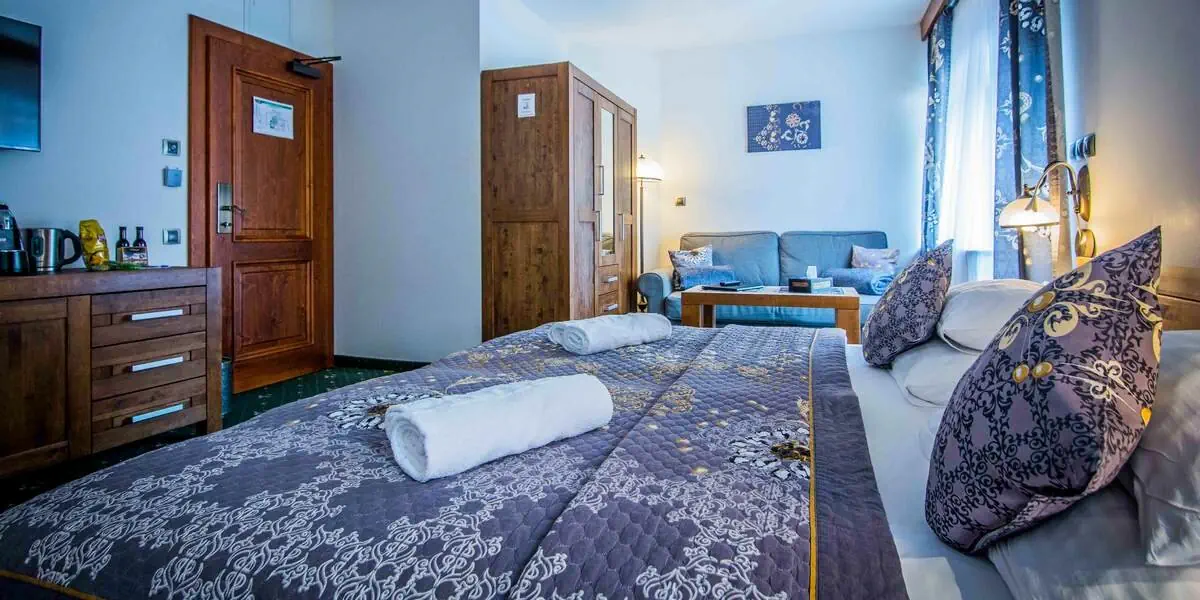 - Codzienne śniadanie w formie bufetu - Sauna fińska w każdym pokoju - Internet Wi-Fi - Podatek VAT
