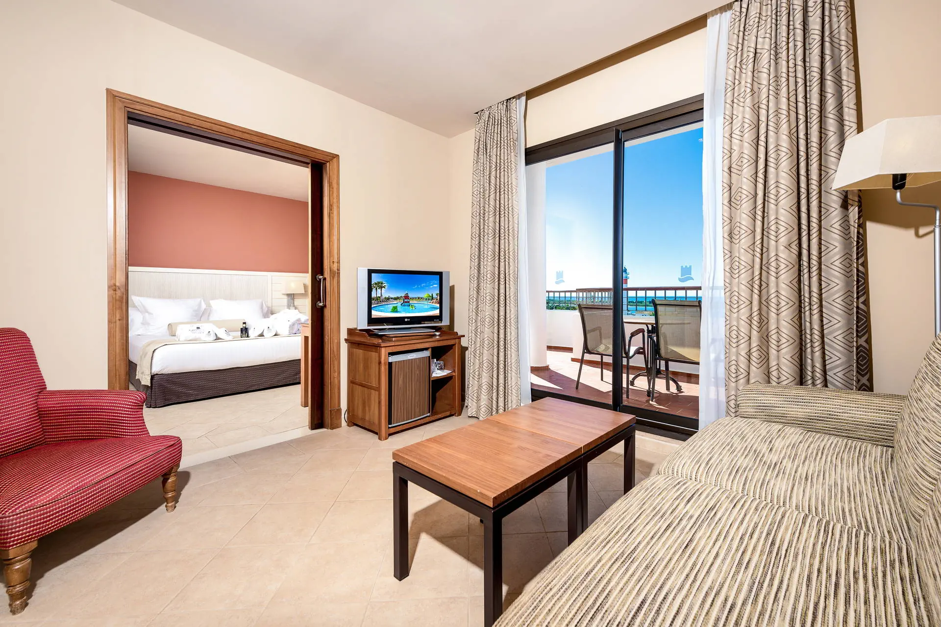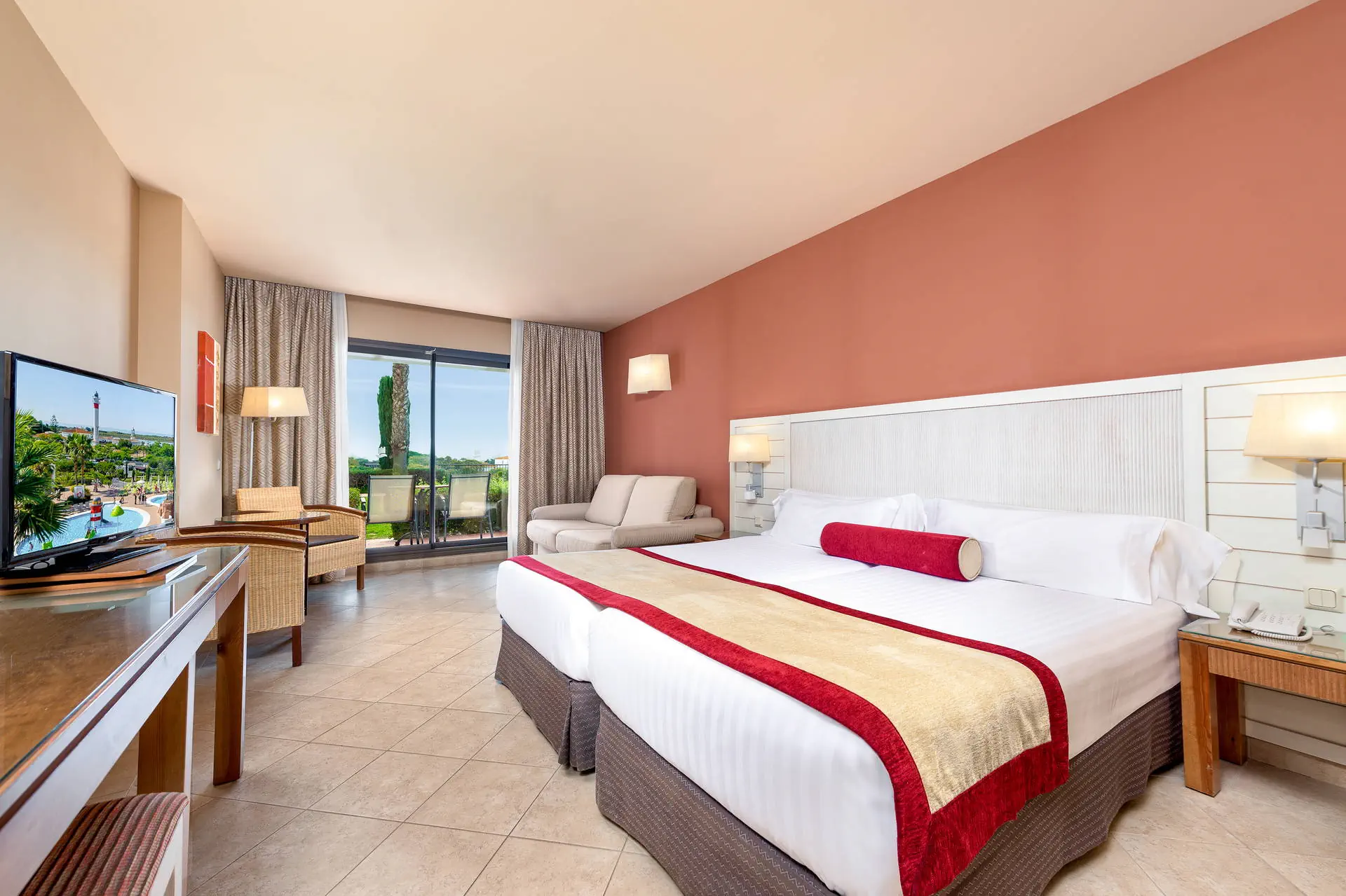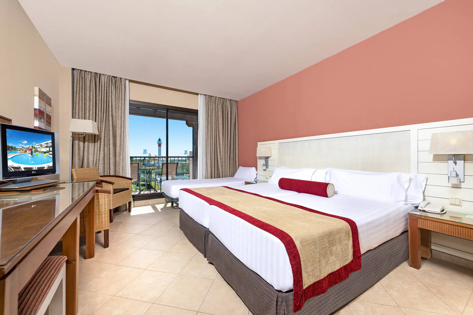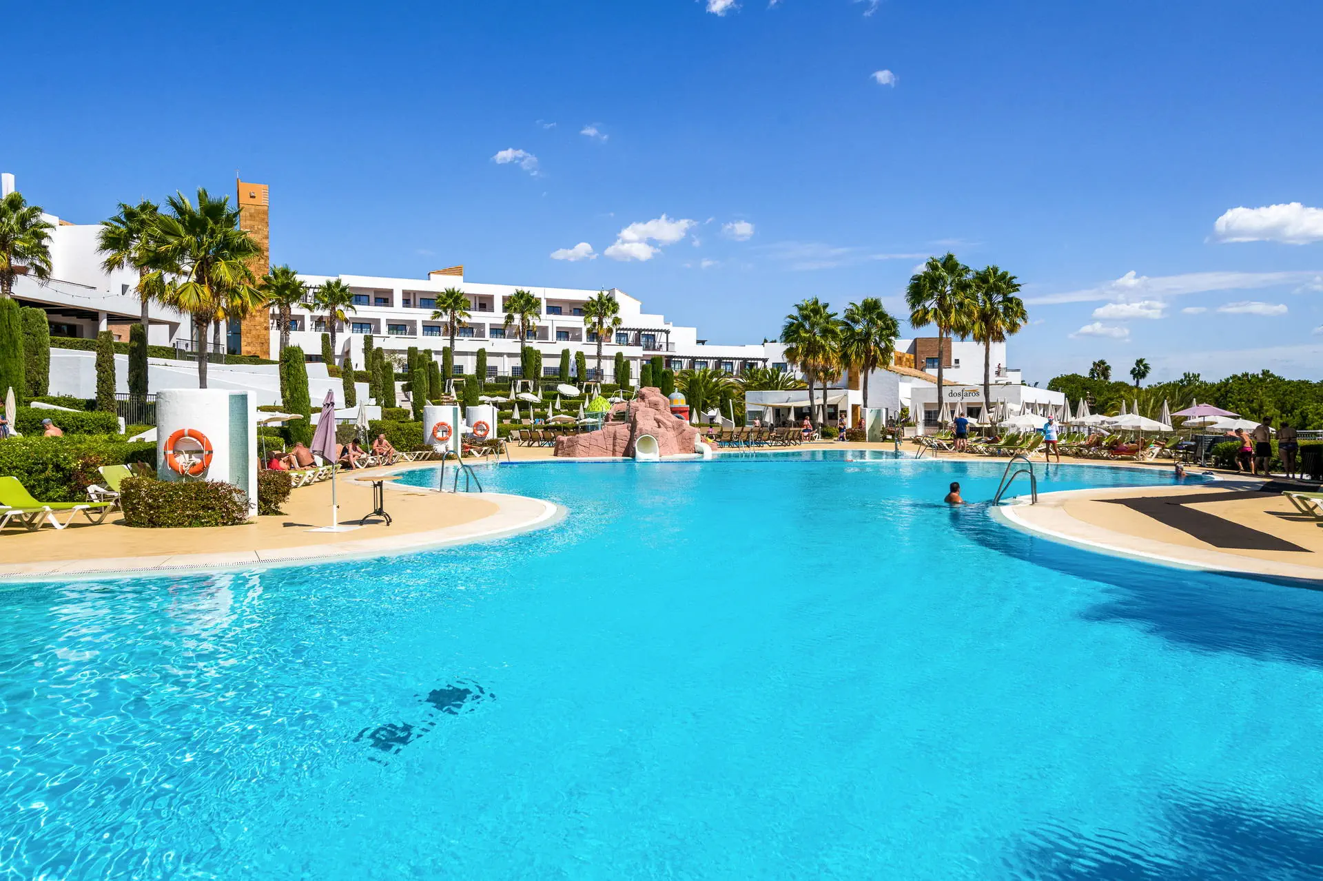 Do dyspozycji gości Recepcja dostępna dla Gości hotelu. 1 basen dostępny dla Gości hotelu, brodzik dla dzieci, jacuzzi, ogród z leżakami i parasolami, ręczniki basenowe (depozyt płatny ok. 10 Eur). Atrakcje dla dzieci: mini klub, plac zabaw. Restauracje: restauracja bufetowa, restauracja a'la carte, bar. Pozostałe informacje: wypożyczalnia rowerów i samochodów (płatne), sklep z pamiątkami. Kategoria lokalna **** Naszym zdaniem Hotel w El Rompido, położony w otoczeniu przyrody, oferuje bliskość natury i urokliwego miasteczka. Naturalne krajobrazy stanowią doskonałe tło dla różnorodnych animacji, które zapewniają udany wypoczynek. To idealne miejsce zarówno dla rodzin, jak i miłośników przyrody, którzy cenią relaks w otoczeniu pięknych widoków. Pokoje Hotel dysponuje 248 pokojami 2 osobowymi (ok. 20m2) z możliwością 1 dostawki, komfortowo wyposażonymi, z łazienką (suszarka do włosów), klimatyzacją, mini barem (płatny), sejfem (płatny ok. 1,5 EUR/dzień), Tvsat, telefonem, tarasem (meble balkonowe). Wifi w pokojach za darmo. Łóżeczko dla dziecka do 2 lat za darmo (przy układzie 3 osób + infant hotel może odmówić wstawienia łóżeczka). Możliwość wypożyczenia czajnika elektrycznego (ilość ograniczona, płatne na miejscu). Możliwa dopłata za boczny lub bezpośredni widok na morze. Hotel posiada 3 pokoje oraz udogodnienia dla osób niepełnosprawnych (dostępność na potwierdzenie). Położenie Do lotniska w Faro (Portugalia) jest około 100 km. Do centrum miasteczka El Rompido jest około 200 m. Hotel położony jest tuż przy Parku Narodowym Donana w malowniczej wiosce El Rompido, której specjalnością są owoce morza. Przystanek autobusowy znajduje się w odległości ok 500 m od hotelu. Program sportowy i animacyjny Dla każdego: siłownia, siatkówka plażowa, boisko multisportowe, petanka. Tylko dla dorosłych: lekcje tańca, wyprawy botaniczne, stretching, zajęcia kulinarne połączone z degustacją, domowe spa - zrób to sam, lekcje hiszpańskiego. Dla dzieci: gry i zabawy sportowe, nocny kemping w hotelowym ogrodzie. Za dodatkową opłatą: tenis (ok. 15 EUR/godzina), paddle, ping pong, bilard, jacuzzi, łaźnia turecka, masaże, zabiegi na twarz i ciało. Forti Camp - nocny biwak dla dzieci i nastolatków w wieku od 8 do 17 lat (35EUR/osoba, wymagana rezerwacja). Rozpoczęcie o godz. 20:00, zakończenie następnego dnia o godz. 10:00 (uczestnicy otrzymują kolację w formie pikniku oraz śniadanie w formie bufetu). W programie: spacer z przewodnikiem po terenie przyrodniczym, wieczór pełen gier, zabaw grupowych oraz opowieści. *Istnieje również możliwość nocowania z rodziną w namiocie na terenie Forti Camp. Wyżywienie Rodzaje wyżywienia i posiłki: Śniadania w formie bufetu. Istnieje możliwość dopłaty do obiadokolacji. Restauracja bufetowa El Olivo Serwuje śniadania i kolacje w formie bufetu. Dania kuchni lokalnej i międzynarodowej. Tematyczne wieczory kulinarne (np. andaluzyjski, śródziemnomorski).Restauracja à la carte Dos Faros (czynna sezonowo). Specjalizuje się w daniach z ryb i owoców morza.Bar Noble. Przekąski, napoje, koktajle. Pozostałe informacje: Napoje i przekąski serwowane w miejscach wyznaczonych przez hotel w godzinach 11:00-23:00. Internet Wifi w hotelu gratis. Strona www Plaża Odległość plaży od hotelu wynosi około 900 metrów. Konieczna przeprawa płatną łodzią, kursuje co około 60 minut, dla Gości hotelu jedna bezpłatna przeprawa w obie strony dziennie. Piaszczysta i szeroka. Ograniczone zagospodarowanie (leżaki i parasole).