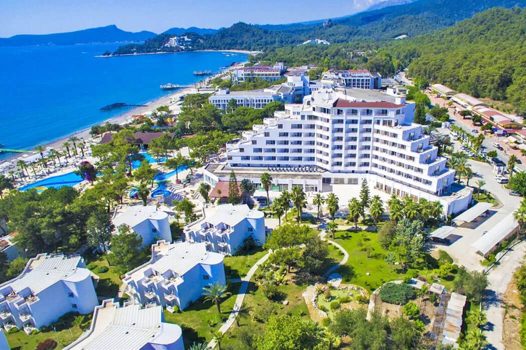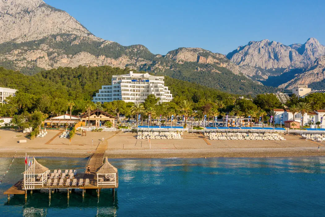 8 km od centrum Kemer, 45 km od lotniska w Antalyi-AYT. Hotel usytuowany na powierzchni: 43000 m2.