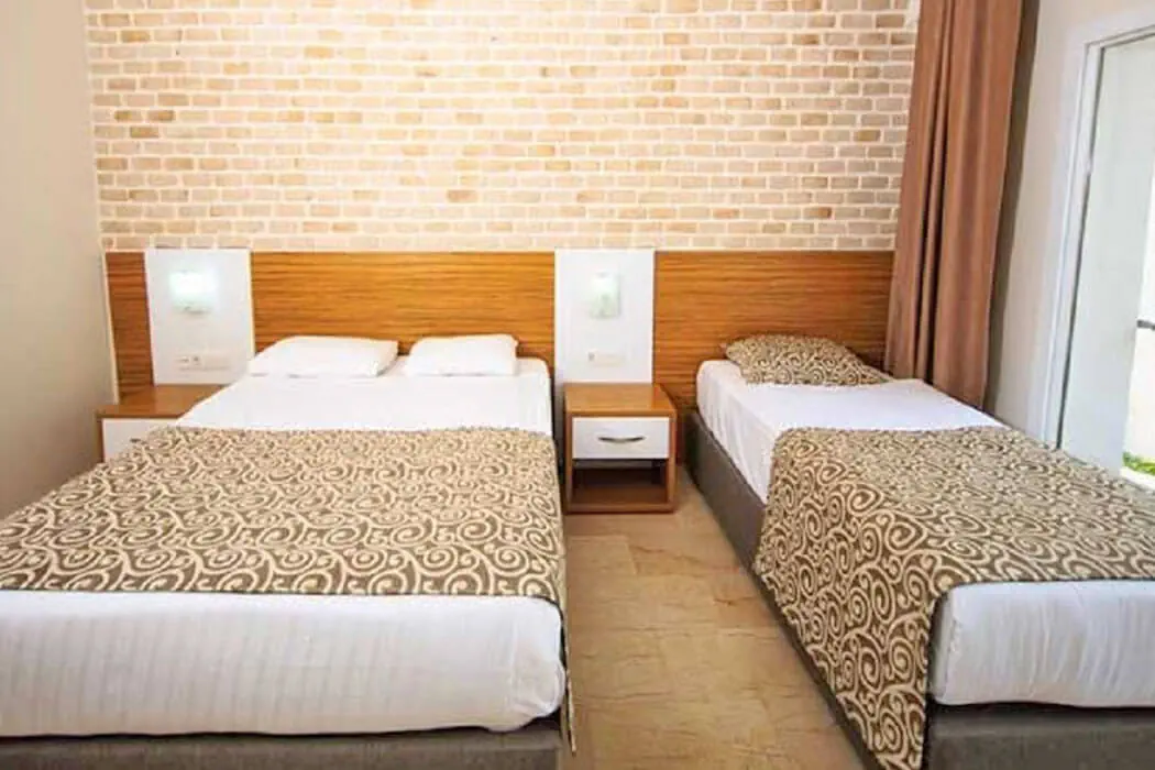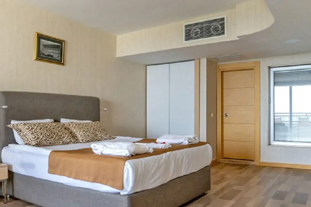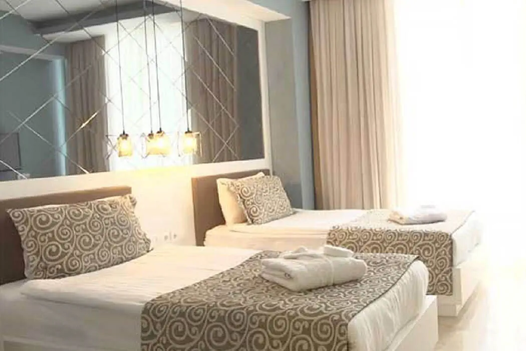 Zlokalizowane są w 11 budynkach: - 1 budynek główny (liczba pięter: 7, liczba wind: 4) - 10 bungalowów (liczba pięter: 1, liczba wind: 0) Typy pokoi: - Main Building Land View dla max. 3 os.: 1 sypialnia, klimatyzacja centralna, sejf (bezpłatny), minibar (bezpłatny, uzupełniany tylko w dniu przyjazdu), TV, telefon, łazienka (prysznic, WC), balkon - Main Building Sea View dla max. 3 os.: 1 sypialnia, klimatyzacja centralna, sejf (bezpłatny), minibar (bezpłatny, uzupełniany tylko w dniu przyjazdu), TV, telefon, łazienka (prysznic, WC), balkon - Garden Standart dla max. 3 os.: 1 sypialnia, klimatyzacja centralna, sejf (bezpłatny), minibar (bezpłatny, uzupełniany tylko w dniu przyjazdu), TV, telefon, łazienka (prysznic, WC), balkon - Main Building Family Room dla max. 4 os.: 2 sypialnie, klimatyzacja centralna, sejf (bezpłatny), minibar (bezpłatny, uzupełniany tylko w dniu przyjazdu), TV, telefon, łazienka (prysznic, WC), balkon - Garden Family Room dla max. 4 os.: 2 sypialnie, dostęp do współdzielonego basenu, klimatyzacja centralna, sejf (bezpłatny), minibar (bezpłatny, uzupełniany tylko w dniu przyjazdu), TV, telefon, łazienka (prysznic, WC), balkon - Main Building Superior Sea View dla max. 4 os.: 1 sypialnia, klimatyzacja, sejf (bezpłatny), zestaw do parzenia kawy/herbaty (bezpłatny), minibar (bezpłatny, uzupełniany tylko w dniu przyjazdu), TV, telefon, łazienka (prysznic, WC), taras