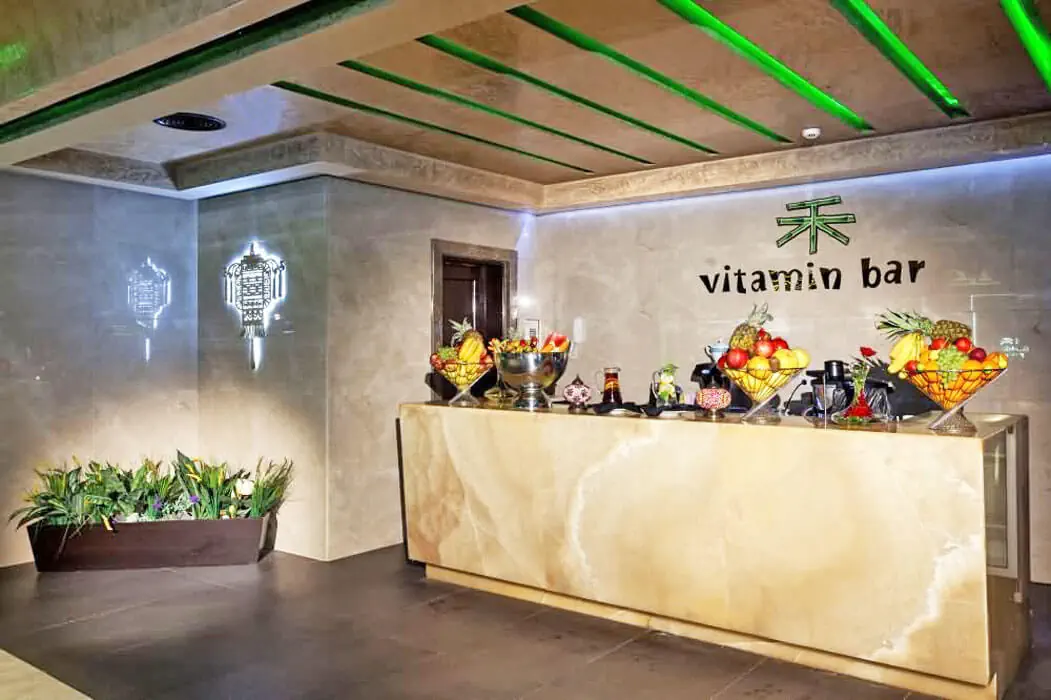 - restauracja główna, restauracje a la carte (3), bary (7), cukiernia Ultra All Inclusive (24h) - śniadanie (07:00-10:00), późne śniadanie (10:00-11:00), obiad (12:30-14:30), kolacja (18:30-21:00), późny posiłek (23:30-00:30), późny posiłek (03:00-05:00) serwowane w restauracji głównej - przekąski (12:00-16:00), podwieczorek (12:00-18:00) serwowane w restauracji z przekąskami - lody - wybrane lokalne napoje alkoholowe i bezalkoholowe - pakiety dla nowożeńców i urodzinowe (na życzenie) Restauracje a la carte - jedna wizyta podczas pobytu w wybranej restauracji gratis, wymagana rezerwacja. - lokalna, owoce morza, włoska