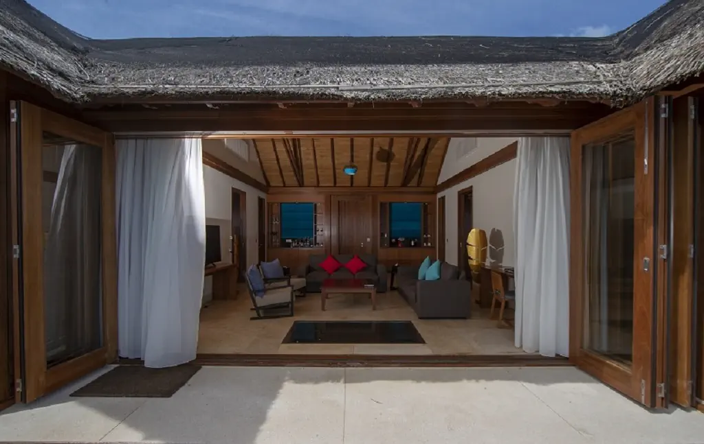 Dla max. 3 osób, Kanały telewizji: Angielski, Telefon w pokoju, wanna i prysznic , Powierzchnia pokoju: ok. 150 m2, Dostawka: łóżko standardowe, Rodzaj podłogi: drewno, Sprzątanie codziennie, 1 sypialnia, Przepierzenie, Maksymalna liczba osób dorosłych: 2, Maksymalna liczba dzieci: 2, Widok na lagunę, Liczba łazienek: 1, Liczba toalet: 1, Zestaw do parzenia kawy i herbaty, Klimatyzacja: Klimatyzacja indywidualna