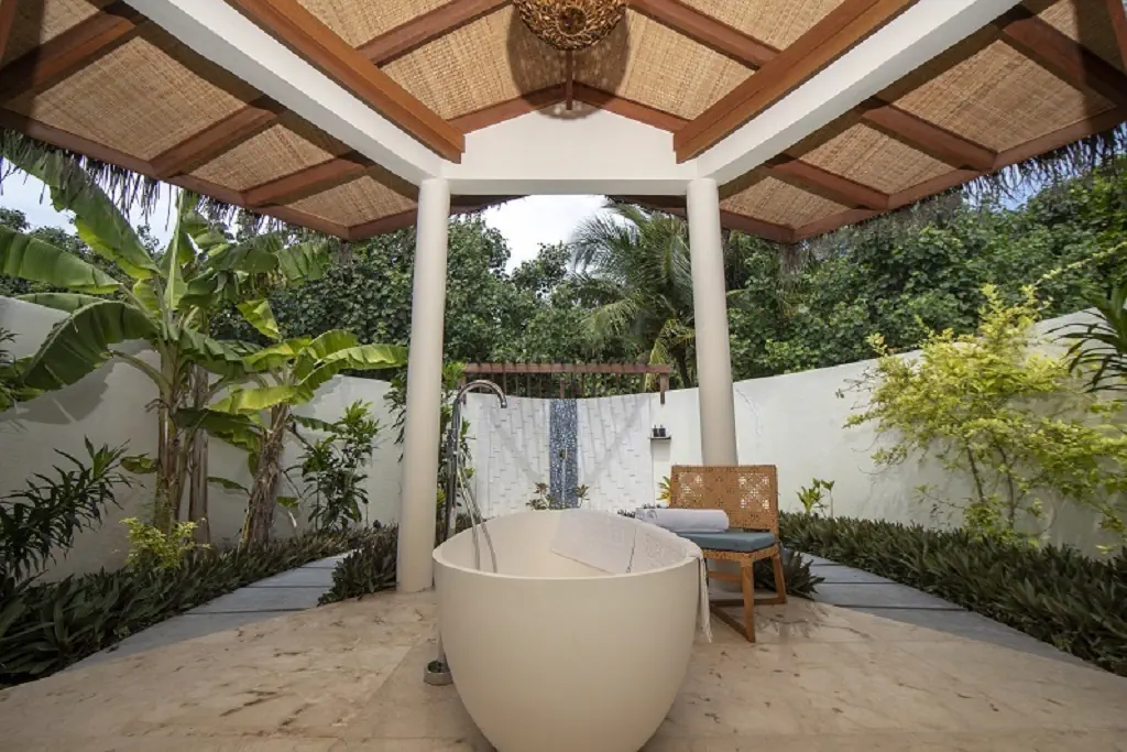 Dla max. 4 osób, Przestrzeń zewnętrzna: Taras, Kanały telewizji: Angielski, Telefon w pokoju, wanna i prysznic , Powierzchnia pokoju: ok. 200 m2, Dostawka: sofa, Rodzaj podłogi: drewno, Sprzątanie codziennie, miejsce do pracy, 1 sypialnia, 1, Maksymalna liczba osób dorosłych: 3, Maksymalna liczba dzieci: 2, Prysznic na świeżym powietrzu, Frontalny widok na plażę, Bezpośredni dostęp do plaży, Prywatny basen, Liczba łazienek: 1, Liczba toalet: 1, Zestaw do parzenia kawy i herbaty, Klimatyzacja: Klimatyzacja indywidualna