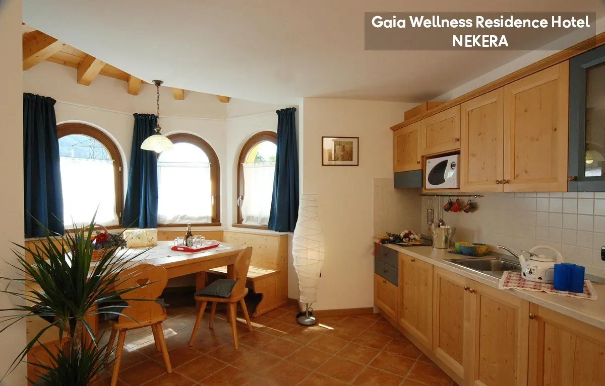 studia dwuosobowe: ok. 37 m2: ogrzewanie, aneks kuchenny (płyta grzewcza, kuchenka mikrofalowa, czajnik elektyryczny, lodówka, sztućce naczynia), TV-Sat., telefon, sejf, prysznic, WC, suszarka. Apartamenty z 1 sypialną: ok. 40 m2: pokój dzienno-sypialny z rozkładaną sofą i aneksem kuchennym oraz oddzielna sypialnia. Dodatkowo balkon, poza tym wyposażone jak studia. Apartament z 2 sypialniami: ok. 45 m2; pokój dzienny z rozkładaną sofą i aneksem kuchennym, sypialnia z łóżkiem małżeńskim i sypialnia z dwoma łóżkami pojedynczymi. Dodatkowo balkon, poza tym wyposażone jak studia.