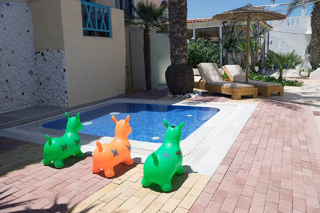 5 km od Hersonissos, 20 km od lotniska w Heraklionie-HER. Hotel usytuowany na powierzchni: 1000 m2.