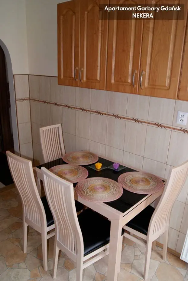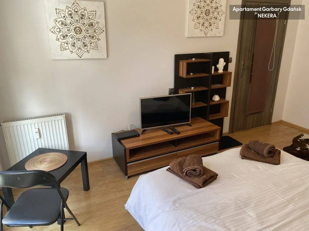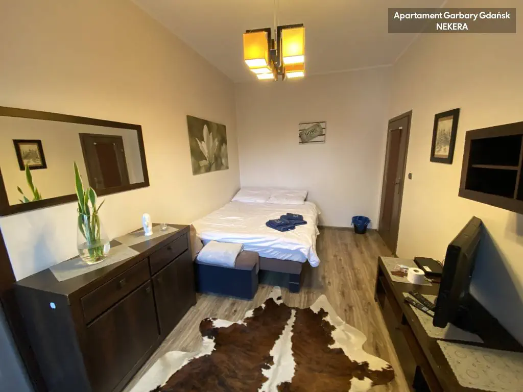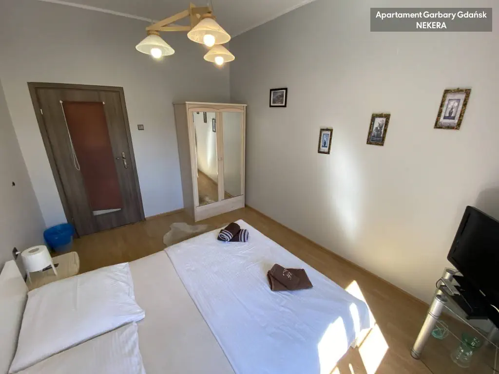Apartament został bardzo gustownie i starannie wykończony. Każdy z trzech niezależnych pokoi, posiada wygodne dwuosobowe łóżko i telewizor. Kuchnia zabudowana z lodówką, kuchenką z piekarnikiem oraz całym niezbędnym wyposażeniem (czajnik, toster, komplet sztućców, naczynia) . W łazience kabina prysznicowa, umywalka i toaleta. W jednym z pokoi zabudowana duża szafa. W apartamencie jest dostępna deska do prasowania i żelazko.