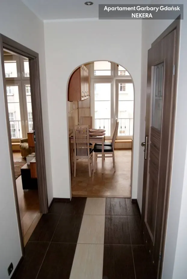 Apartament położony na ul. Garbary na gdańskiej Starówce na drugim piętrze w trzypiętrowej kamienicy. 100m od słynnej Złotej Bramy i Katowni z muzeum Bursztynu, 200 m od Ratusza, Fontanny Neptuna i Dworu Artusa. Lokalizacja apartamentu umożliwia organizowanie romantycznych spacerów po uliczkach gdańskiej Starówki, które można połączyć ze zwiedzaniem zabytków. Apartament jest doskonale skomunikowany ze środkami komunikacji miejskiej – 5 minut spacerem do przystanku tramwajowego, dojście do mariny zajmuje tylko 10 minut. Blisko do dworca Gdańsk Główny ( SKM, PKP, PKS). W okolicy sklepy spożywcze, restauracje, banki.