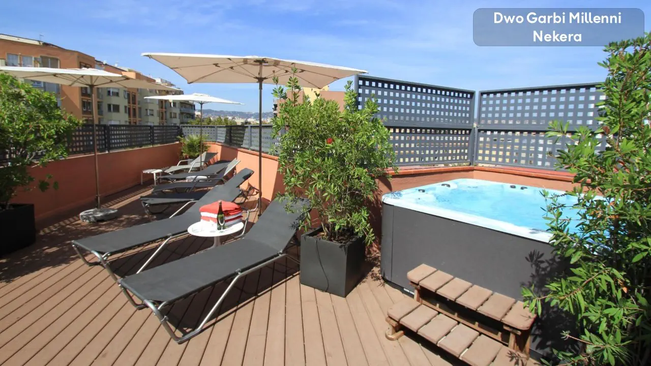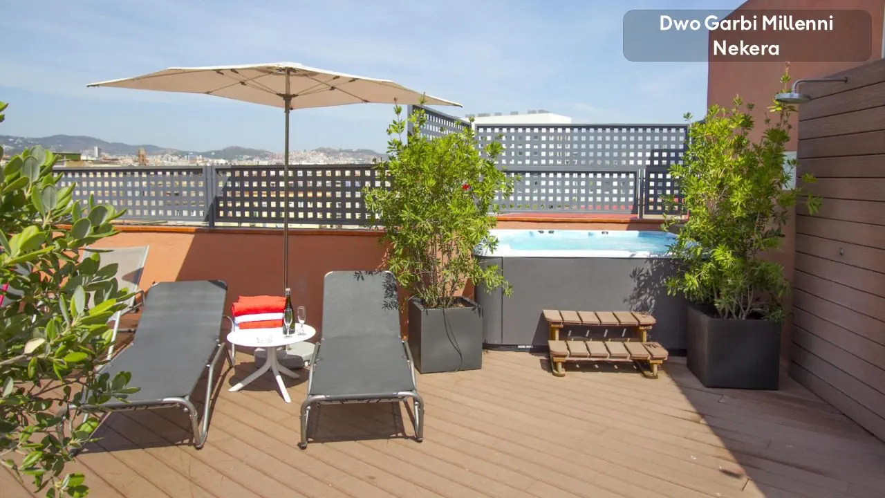 Hotel Dwo Garbi Milleni to czterogwiazdkowy obiekt położony w centrum Barcelony, blisko stacji metra Paral lel. Mieści się w odrestaurowanym budynku z 1927 roku i oferuje nowoczesne, klimatyzowane pokoje z bezpłatnym internetem WiFi. Na dachu znajduje się taras z jacuzzi i sauną. W hotelu dostępne są także śniadania w formie bufetu, siłownia i sala konferencyjna.