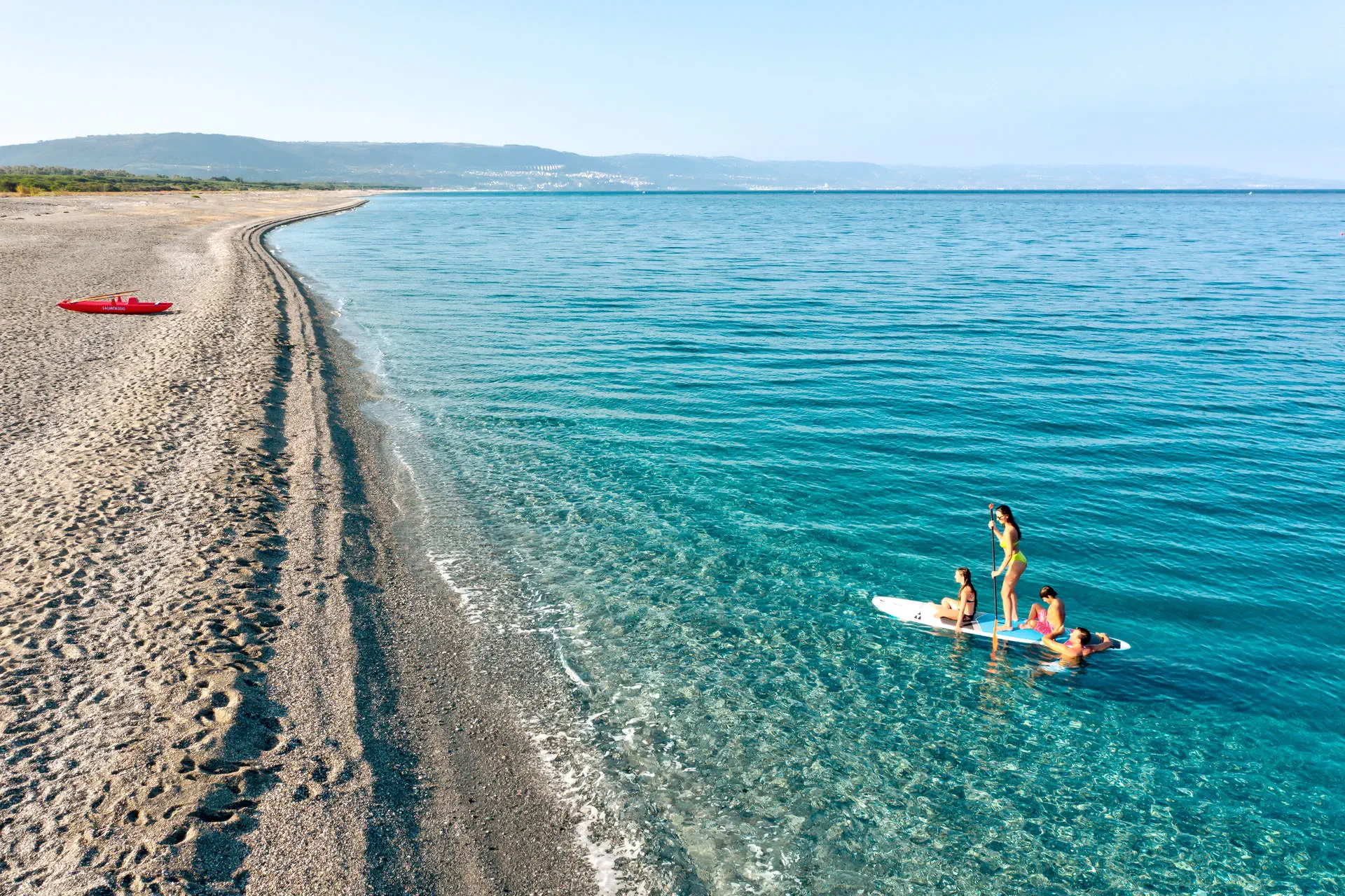Do dyspozycji gości Recepcja dostępna dla Gości hotelu. 2 baseny ze słodką wodą (dla aktywnych i relaksacyjny), brodzik dla dzieci (słodka woda, gł. 0,7m), bezpłatne leżaki i parasole przy basenie, ręczniki kąpielowe płatne ok. 16 EUR/tydzień (z codzienną wymianą dodatkowo 3 EUR/dzień). Restauracje: restauracja główna, restauracja na plaży, 3 bary: bar główny, bar przy plaży, bar przy basenie. Pozostałe informacje: sklep (płatny), pomoc lekarska na terenie hotelu (płatna), wypożyczalnia samochodów (płatna), parking (bezpłatny, ilość miejsc parkingowych ograniczona). Wyżywienie Rodzaje wyżywienia i posiłki: All Inclusive: śniadania, lunche i obiadokolacje w formie bogatego bufetu. Bary: Bary z napojami bezalkoholowymi i lokalnymi alkoholami w godzinach 10:00 - 24:00. Bar Don't tell Mamma, mogą obowiązywać dodatkowe opłaty. Winobar Enoteca Calabrese, otwarty sezonowo, pn.-pt. w godzinach 19:00-23:00, mogą obowiązywać dodatkowe opłaty. Restauracje: Restauracja La Dolce Vita, otwarta sezonowo, 4 dni w tygodniu w godzinach 19:00-22:00, mogą obowiązywać dodatkowe opłaty. Program sportowy i animacyjny Dla każdego: korty tenisowe (bezpłatne w ciągu dnia), tenis stołowy, boiska sportowe bezpłatne w ramach zajęć animacyjnych, strzelanie z łuku, boccia, gimnastyka, aerobik, stretching, siatkówka plażowa. Tylko dla dorosłych: dyskoteka na plaży. Dla dzieci: plac zabaw, mini disco, mini klub hotelowy. Za dodatkową opłatą: korty tenisowe (dodatkowo płatne wieczorem i w nocy), siłownia, centrum wellness, wypożyczalnia sprzętu wodnego. Internet Bezpłatny Internet Wi-Fi w recepcji oraz lobby hotelu. Kategoria lokalna **** Naszym zdaniem Największy ośrodek w Kalabrii oferuje rozległy teren i wysoki standard, co czyni go idealnym miejscem na wypoczynek dla aktywnych oraz rodzin z dziećmi. Położony w spokojnej okolicy, zapewnia liczne atrakcje na terenie hotelu, co wyróżnia go na tle konkurencji. Cieszy się pozytywnymi opiniami Gości, a jego oferta jest jedną z najlepszych w regionie. Dzięki temu jest doskonałym wyborem dla osób poszukujących komfortu i różnorodnych możliwości spędzania czasu. Hotel od wielu sezonów przyciąga turystów, którzy cenią bogatą ofertę sportową i rekreacyjną. Strona www www.gardencalabria.it Położenie Hotel położony jest w spokojnej i urokliwej okolicy wśród bujnej roślinności śródziemnomorskiej. Odległość do lotniska Lamezia di Terme wynosi około 15 km. Do Pizzo, gdzie znajdują się sklepy, restauracje i pizzerie, jest około 15 km. Dostępny jest hotelowy bus kursujący dwa razy dziennie do Pizzo, z wyjątkiem niedziel, w cenie około 5 euro za osobę w obie strony. Plaża Oddalona od 300 do 500 m od hotelu w zależności od położenia pokoju. Przejście przez las piniowy. Piaszczysto-żwirowa. Bezpłatne leżaki i parasole.