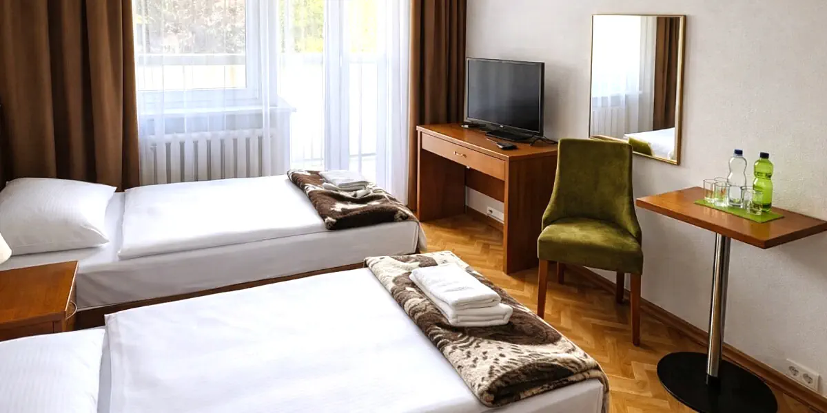 - Możliwość anulacji do 7 dni przed przyjazdem - Codzienne śniadania - Codzienne kolacje - Dla pobytów 03.04.26-06.04.26: Tradycyjna świąteczna kuchnia pełna aromatu i słodkie Wielkanocne wypieki, słodki upominek w pokoju na powitanie, animacje dla dzieci: sobota, niedziela w godz. 10:00 - 12:00 (zajęcia ruchowe i warsztaty plastyczne), szukanie zajączka w hotelowym ogrodzie, ognisko z pieczeniem kiełbasek - dostępność w zależności od pogody, 10 % rabatu do groty solnej w hotelu Trojan, 10 % rabatu na zabiegi w Uzdrowisku Lądek, godzinny seans w saunie suchej w cenie pobytu (ustal godzinę korzystania z Recepcją hotelu), wczesne zameldowanie od godziny 12:00 (na potwierdzenie w recepcji hotelowej w miarę dostępności), poźniejsze wymeldowanie do godziny 15:00 (na potwierdzenie w recepcji hotelowej w miarę dostępności) - Możliwość wypożyczenia kijków do Nordic Walking - Dostęp do bilarda, stółu do ping ponga - Dostęp do salki gimnastycznej - Pokój zabaw dla dzieci - Korzystanie z biblioteczki - Bezpłatny parking - Podatek VAT