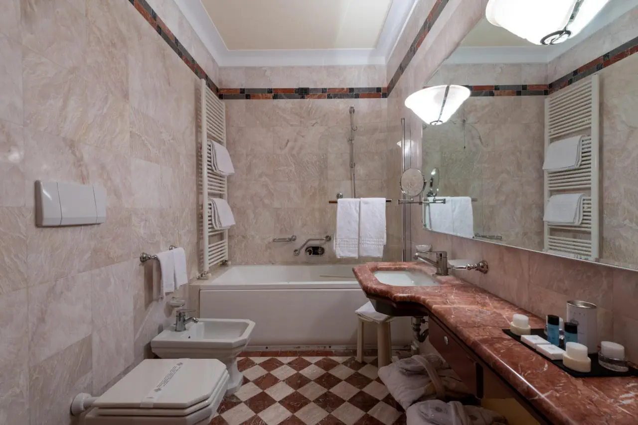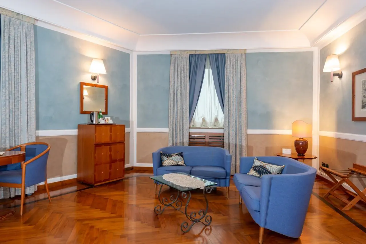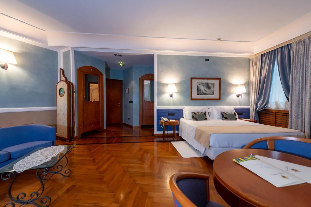 Deluxe - sypialnia, łazienka, klimatyzacja, łącza Wi-Fi, telefon, mała lodówka (minibar na życzenie), LCD TV sat, sejf, balkon lub taras (widok na miasto lub wewnętrzny dziedziniec). Powierzchnia -ok. 25 m kw.