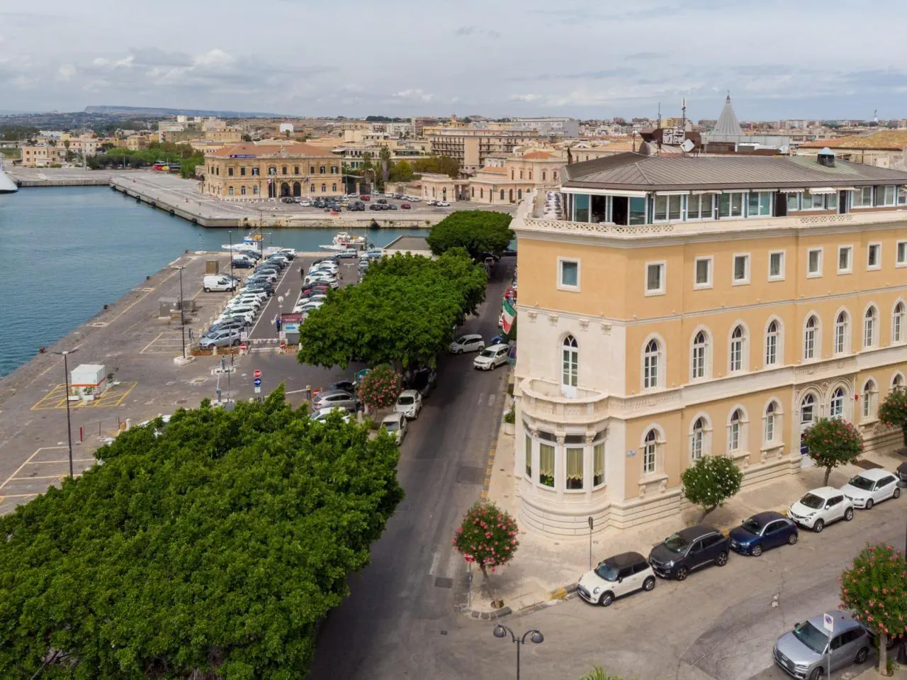 Wschodnio-południowa Sycylia, półwysep Ortygia (tu powstały Syrakuzy), przy nadbrzeżnej ulicy Viale Mazzini, niemal naprzeciwko portu jachtowego, kilometr od stacji kolejowej, ok. 50 km od lotniska (Katania), ok. 500 m od katedry, 700 m od źródła Aretuzy, 900 m od plaży Cala Rossa. W pobliżu są hotele, bary, restauracje, sklepy.