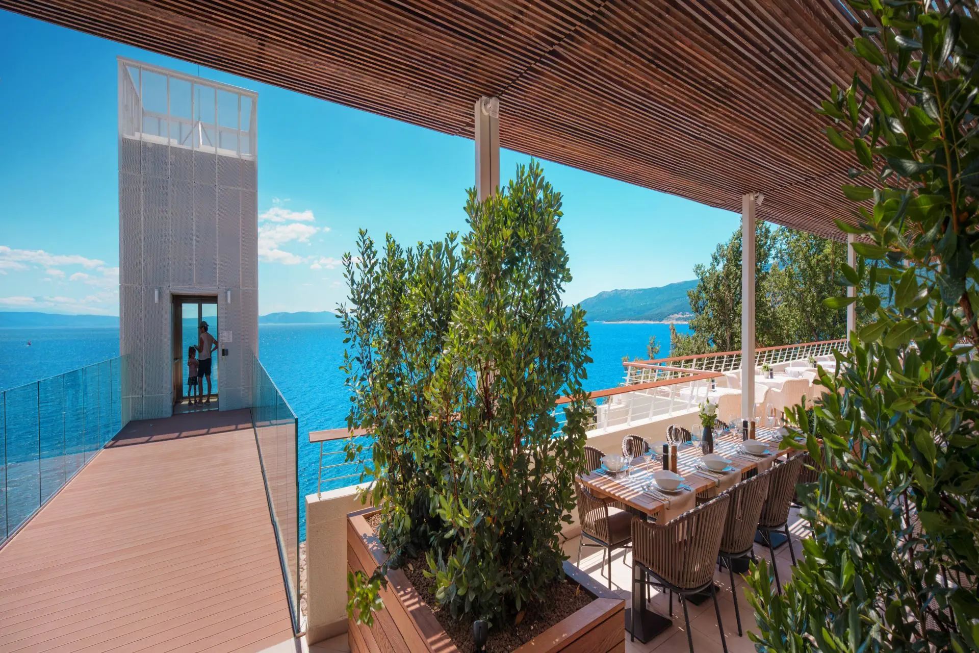 w miejscowości Rabac, w kompleksie Girandella Valamar Collection Resort (w skład kompleksu wchodzą: Girandella Family Hotel 4*, Girandella Maro Suites 5*, Girandella - Designed For Adults 4*, Girandella V Level Village 5*), ok. 47 km od lotniska w Puli.