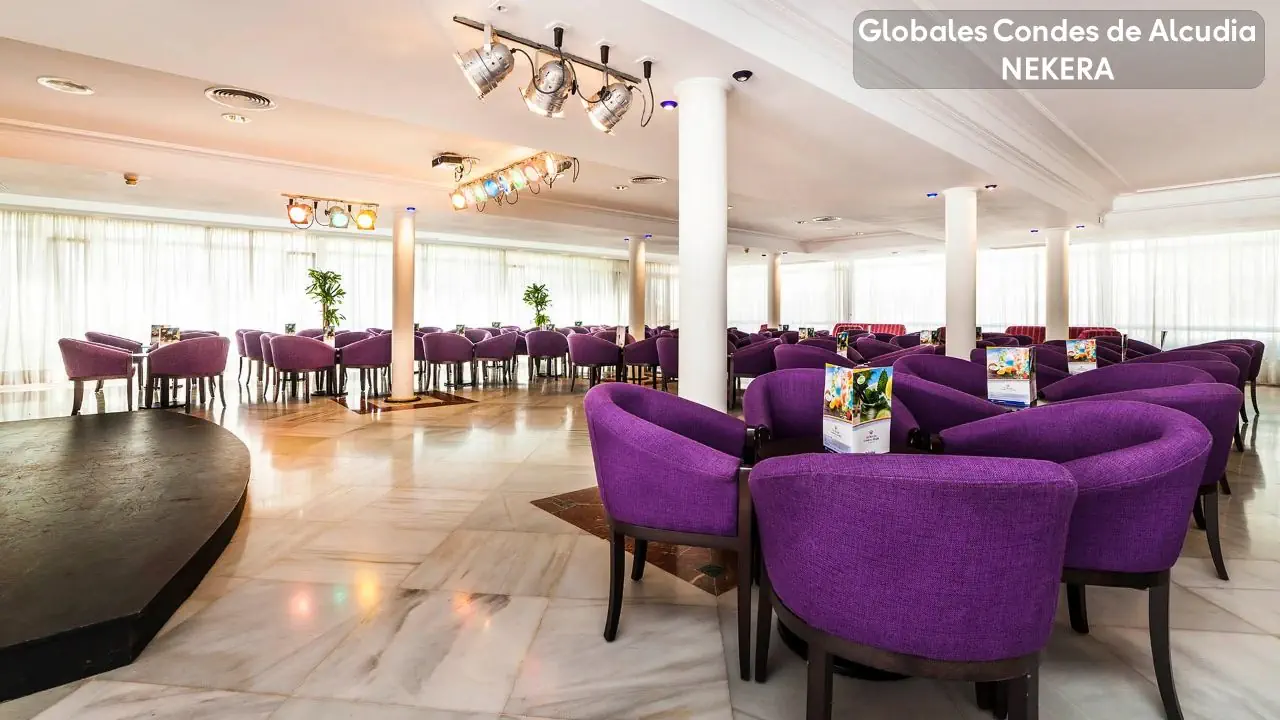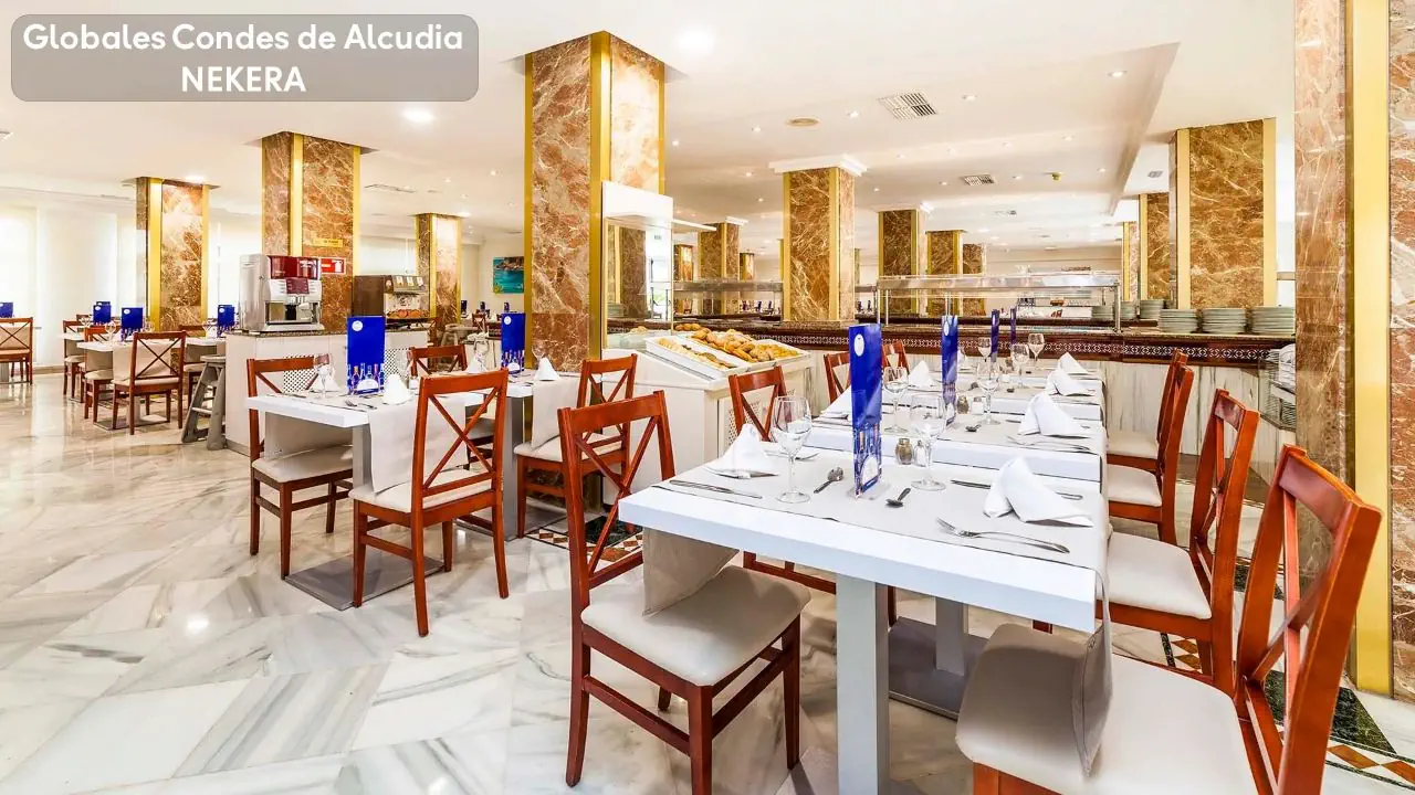 Zgodnie z rozporządzeniem Parlamentu Balearów dotyczącego ograniczenia spożywania alkoholu w hotelach zlokalizowanych w Magaluf, Playa de Palma oraz Arenal bezpłatne napoje alkoholowe wydawane są jedynie podczas obiadu i kolacji w limicie 3 szt na os., pomiędzy posiłkami napoje alkoholowe są płatne. Śniadanie, obiad, kolacja w formie bufetu, w ciągu dnia przekąski, kawa, herbata. Wybrane lokalne napoje bezalkoholowe i alkoholowe dostępne bezpłatnie w godzinach wyznaczonych przez hotel. Kategoria Nekera - 3 gwiazdki, kategoria lokalna - 3 gwiazdki.