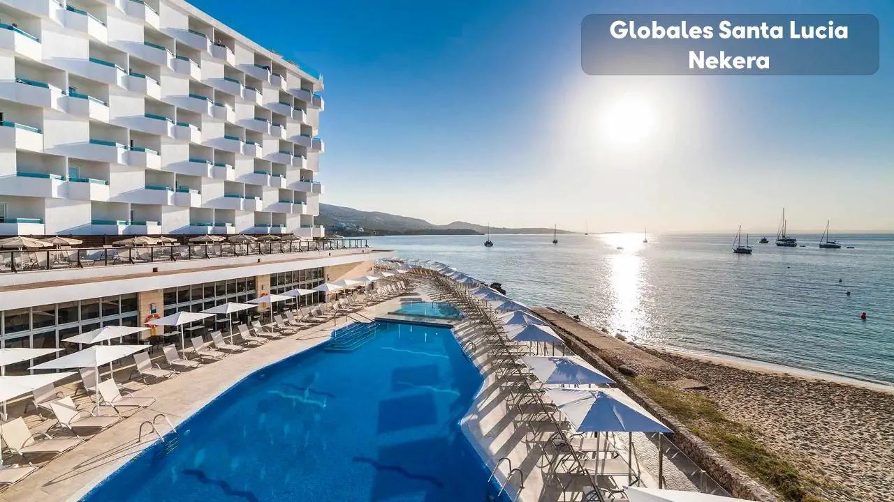 Hotel Globales Santa Lucía położony jest w samym sercu Palma Nova, bezpośrednio przy plaży i pomiędzy dwiema malowniczymi zatokami. Słynie z przepięknych widoków na Morze Śródziemne, które można podziwiać z większości pokoi. Goście mają do dyspozycji przestronne pokoje z balkonami, baseny, strefę wellness, restauracje serwujące kuchnię międzynarodową oraz bogaty program animacyjny. To idealne miejsce zarówno dla par szukających romantycznego wypoczynku, jak i dla osób pragnących relaksu w śródziemnomorskim klimacie.
