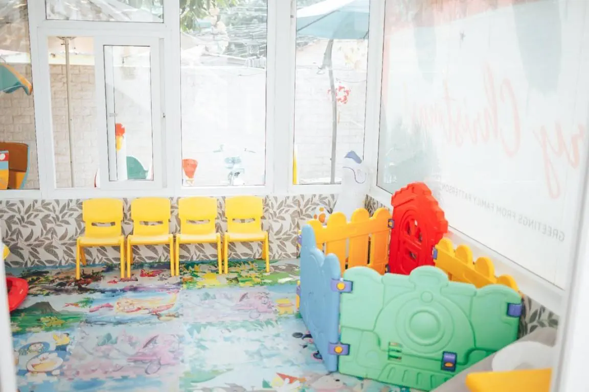 Dla max. 4 osób, Przestrzeń zewnętrzna: Balkon, Kanały telewizji: Angielski, prysznic, Powierzchnia pokoju: ok. 65 m2, Dostawka: łóżko rozkładane, Rodzaj podłogi: płytki, Sprzątanie codziennie, 1 sypialnia, Maksymalna liczba osób dorosłych: 3, Maksymalna liczba dzieci: 3, Widok na ogród, Liczba łazienek: 1, Liczba toalet: 1, Zestaw do parzenia kawy i herbaty, Klimatyzacja: Klimatyzacja indywidualna