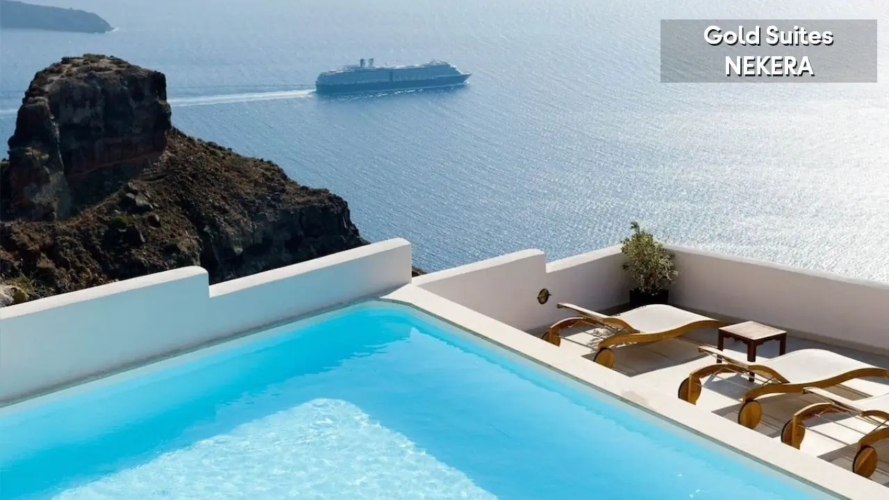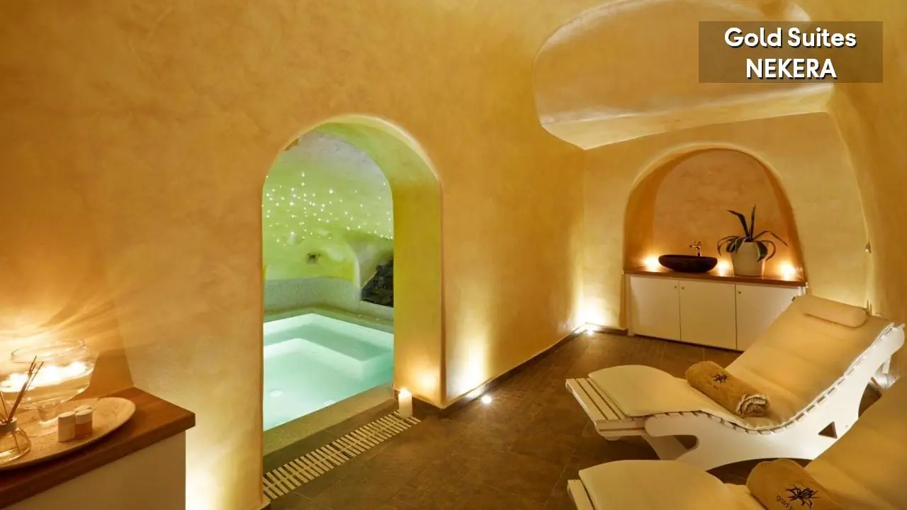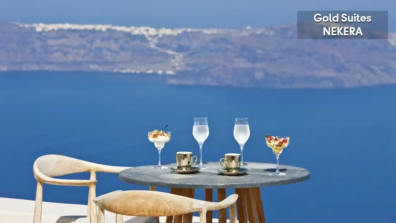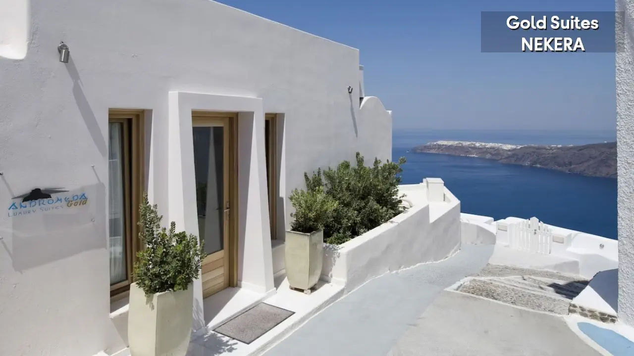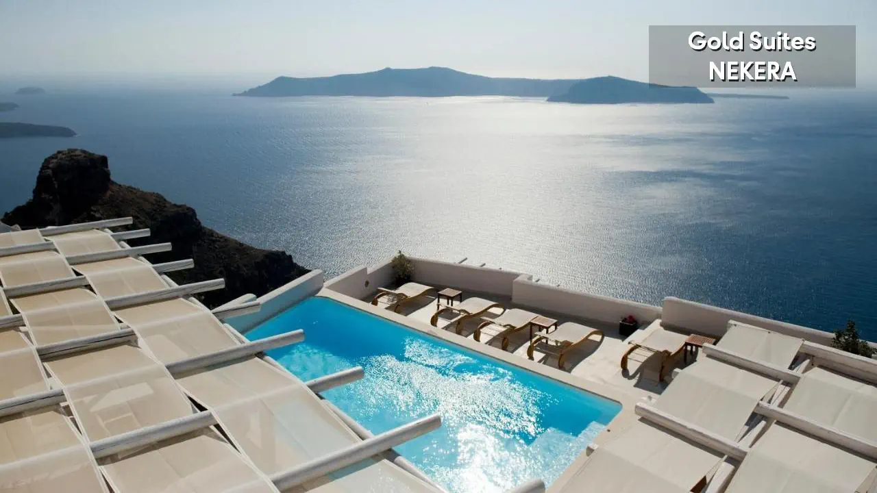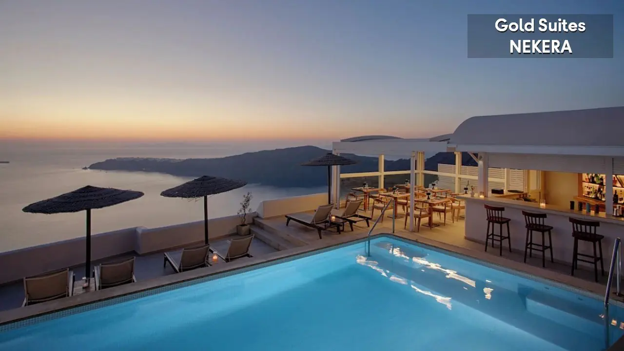Hotel Gold Suites to luksusowy obiekt położony w malowniczej miejscowości Imerovigli na wyspie Santorini. Oferuje wyjątkowe apartamenty z prywatnymi tarasami, które zapewniają spektakularne widoki na kalderę i błękitne wody Morza Egejskiego. Hotel charakteryzuje się eleganckim designem, łączącym nowoczesność z tradycyjnym stylem Cyklad. Goście mogą korzystać z prywatnych basenów, relaksować się w hotelowym spa oraz delektować się wykwintnymi daniami serwowanymi w restauracji. Gold Suites to doskonały wybór dla osób szukających romantycznego wypoczynku w jednym z najpiękniejszych miejsc na świecie.