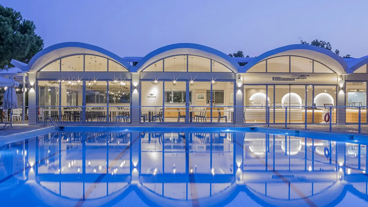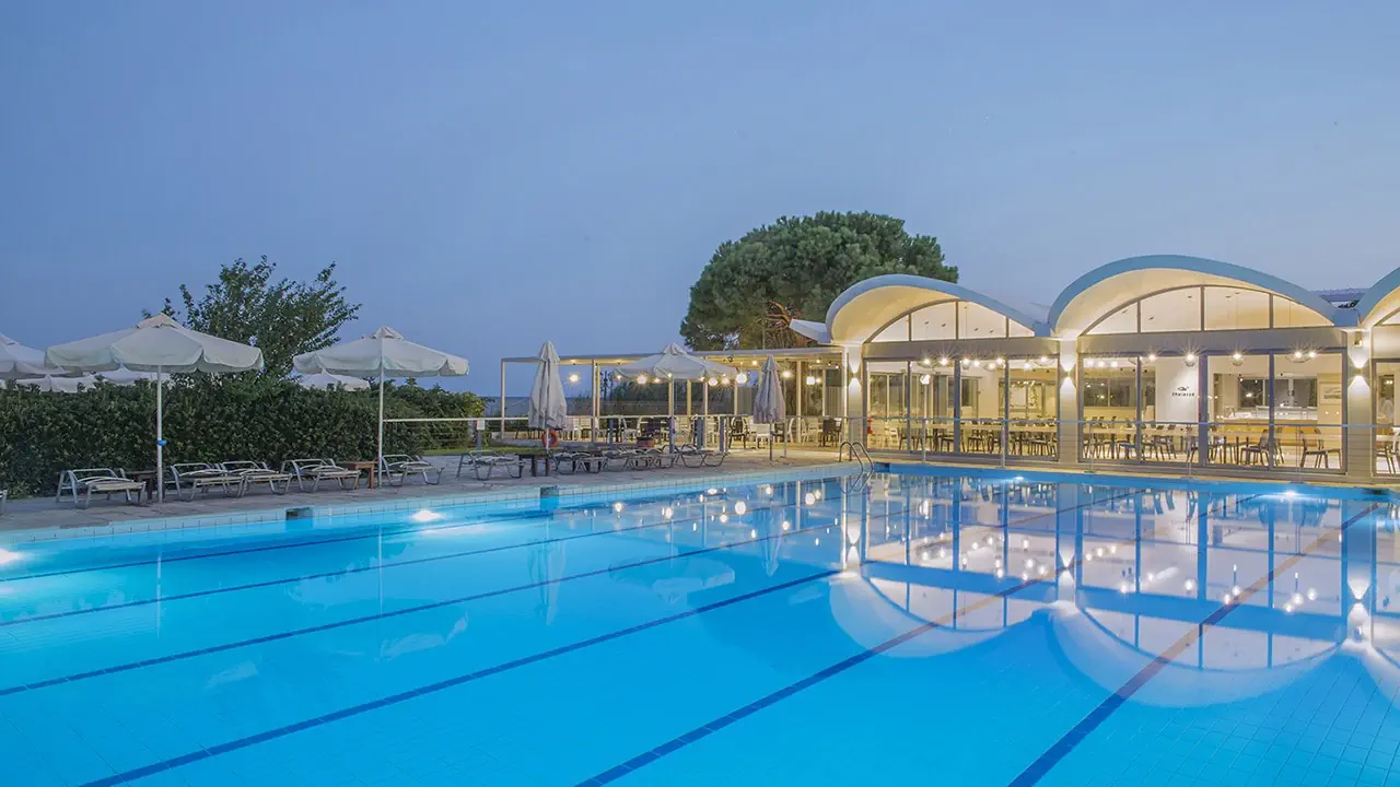 Bezpłatnie• 3 baseny ze słodką wodą (580 m2, 350 m2 & 280 m2)• leżaki i parasole przy basenach• 12 kortów tenisowych z wypożyczalnią sprzętu (kaucja)• koszykówka, siatkówka oraz siatkówka plażowa• mini boisko do piłki nożnej, minigolf, tenis stołowy• boccia, szachy (life-size)• wieczory greckie z folklorem tańca (raz/tydz.)• Klub Zorba (17.06.2026-15.09.2026)Odpłatnie• kajaki, rowery wodne• sporty wodne na plaży• rowery
