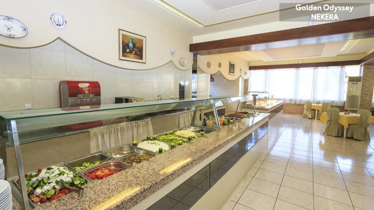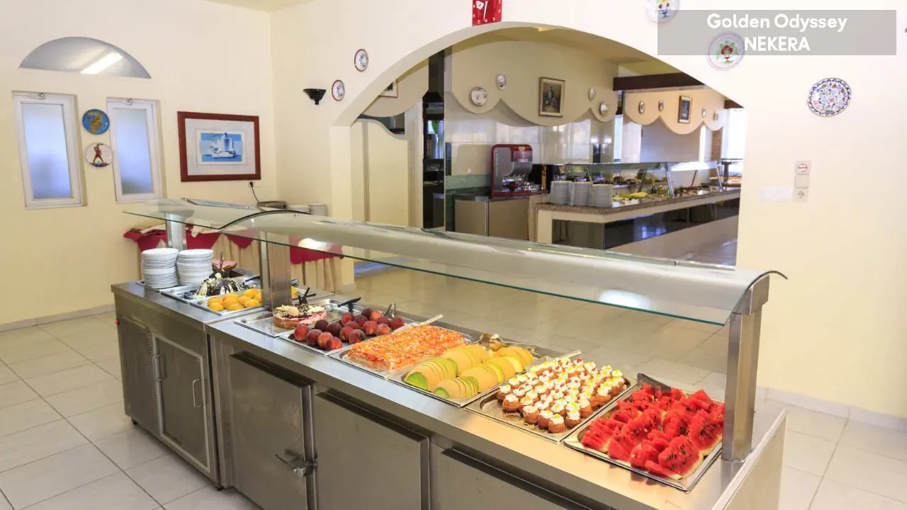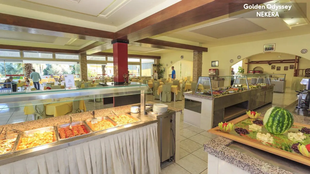 trzy posiłki w formie bufetu w restauracji głównej: śniadanie (07:00 - 10:00), obiad (12:30 - 14:30) oraz kolacja (18:30 - 21:00; podczas kolacji okazjonalnie gotowanie na żywo, wieczory tematyczne). Napoje bezalkoholowe serwowane podczas śniadania: tj. kawa, herbata, czekolada, mleko, soki, woda. Napoje bezalkoholowe i wybrane napoje alkoholowe serwowane podczas obiadu i kolacji: tj. czerwone/białe domowe wino, lokalne piwo, napoje niegazowane, woda. Międzynarodowe napoje importowane: za dodatkową opłatą. Bar z przekąskami przy basenie: lekkie przekąski (12:00 - 15:00) oraz lody (14:00 - 17:00). Zamówienia po godz. 23:00 za dodatkową opłatą.