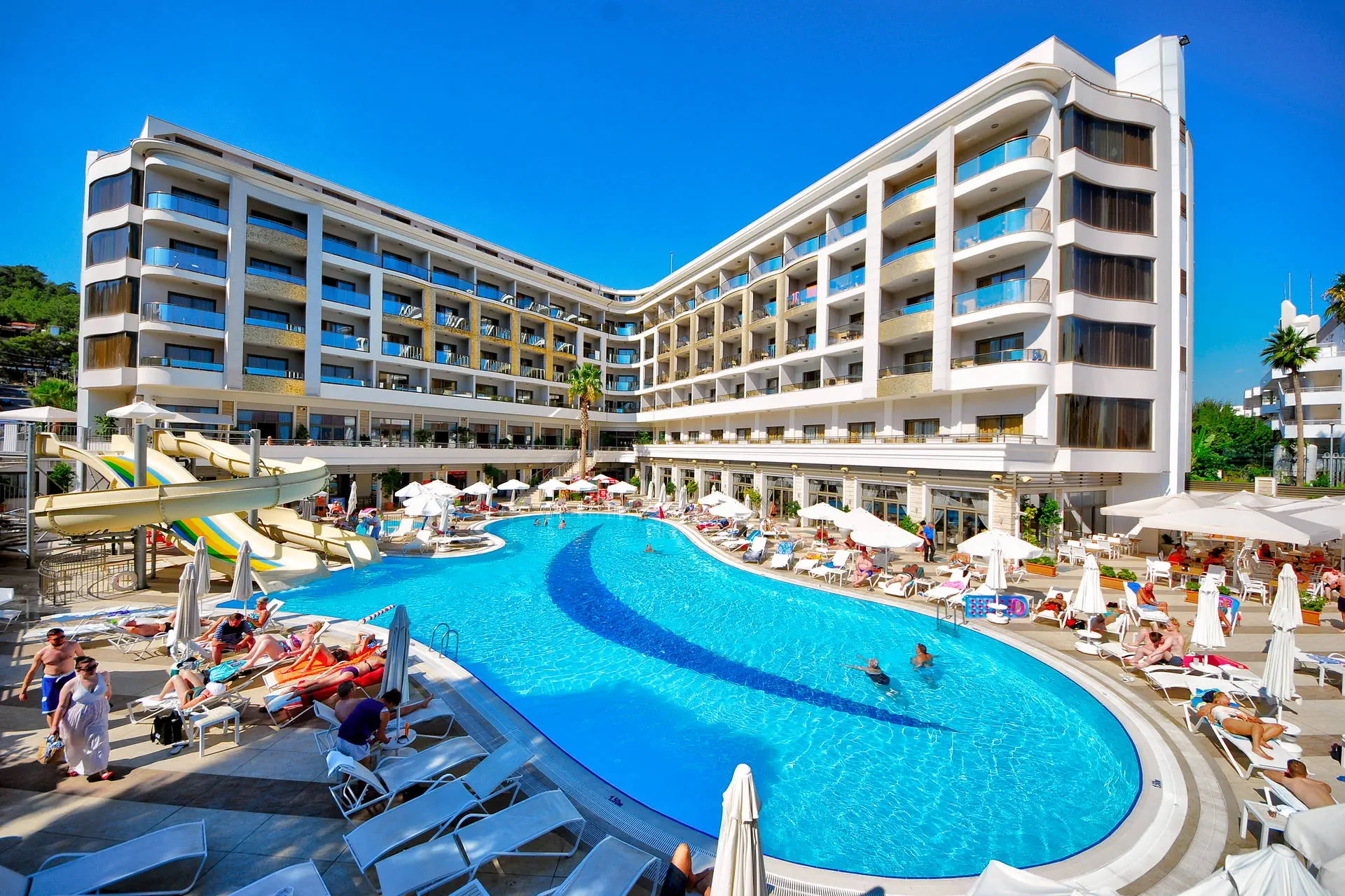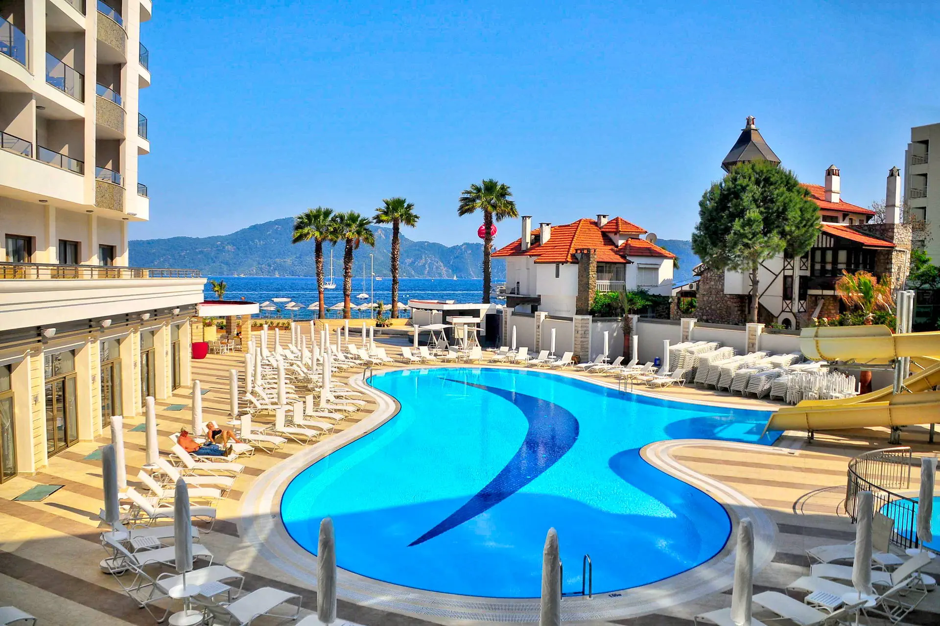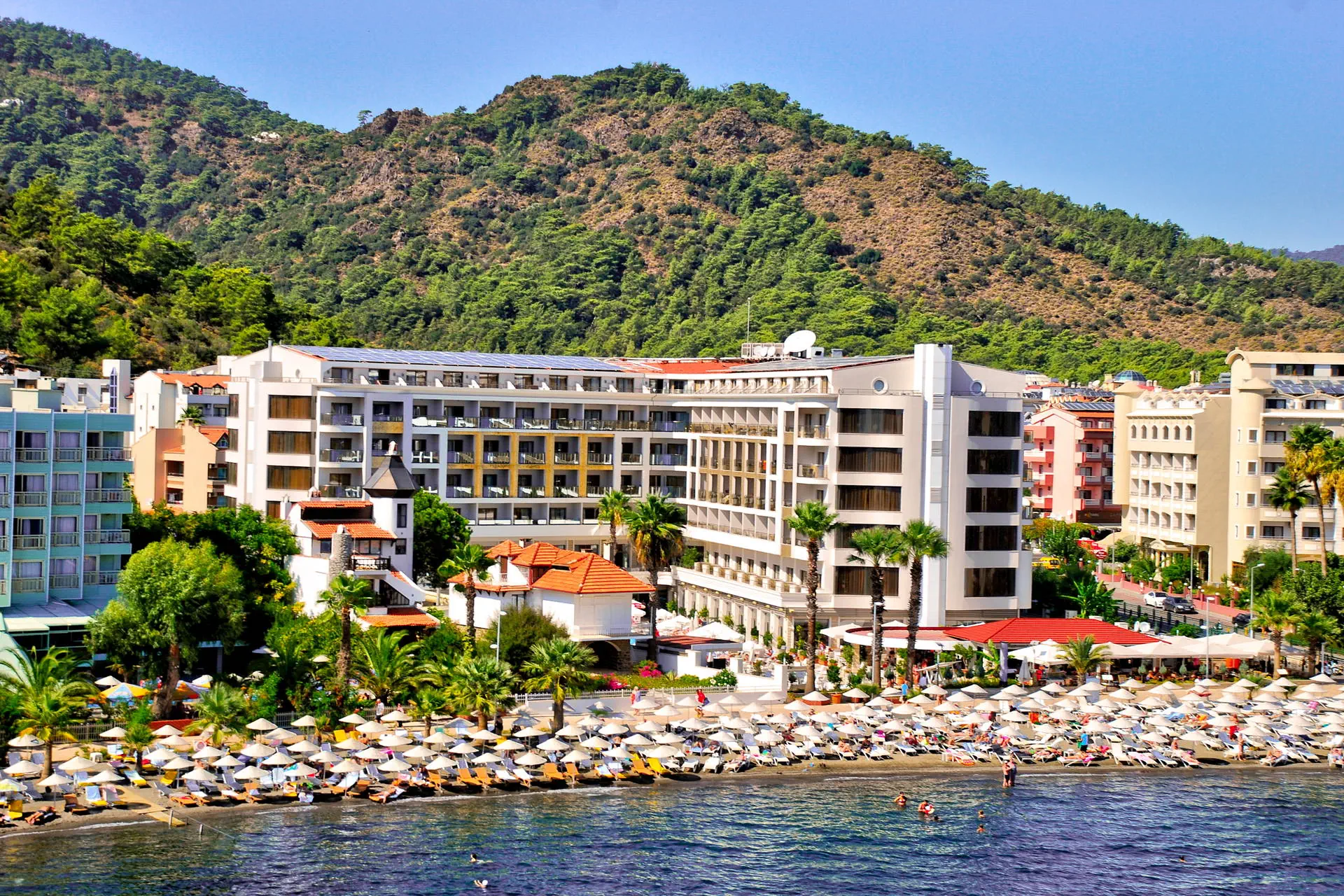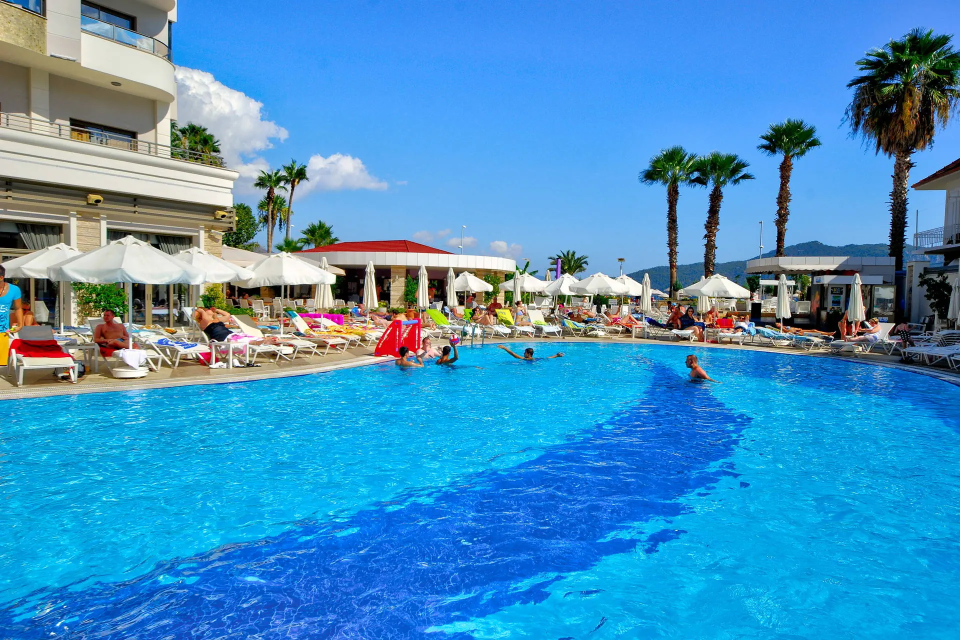 Do dyspozycji gości Recepcja 24h/7, lobby. 1 basen ze zjeżdżalniami (otwartymi w godz. 10:00-12:00, 14:00-16:00), basen kryty, brodzik dla dzieci ze zjeżdżalnią. Atrakcje dla dzieci: brodzik dla dzieci ze zjeżdżalnią. Atrakcje dla dorosłych: fitness, centrum SPA (bezpłatna sauna, łaźnia turecka w godz. 09:00-18:00). Restauracje: restauracja główna, restauracja a’la carte (płatna wg menu), 2 bary (w lobby i przy basenie), cukiernia. Pozostałe informacje: płatne dodatkowo: zabiegi i masaże w centrum SPA, usługi room service, fryzjer, fotograf, lekarz, market oraz sklepy. Internet Bezpłatny Internet Wi-Fi w lobby. Kategoria lokalna ***** Naszym zdaniem Elegancki hotel o wysokim standardzie usług znajduje się bezpośrednio przy plaży w Marmaris, co zapewnia łatwy dostęp do morskich atrakcji. Bliskość centrum miasteczka umożliwia korzystanie z lokalnych rozrywek i uroków turystycznej miejscowości. To doskonałe miejsce dla osób ceniących wygodę i komfortowy wypoczynek w pięknym otoczeniu. Plaża Piaszczysta plaża bezpośrednio przy hotelu. Przejście przez kompleks hotelowy. Ręczniki plażowe, leżaki i parasole dostępne bezpłatnie. Pokoje W hotelu znajduje się 225 komfortowo wyposażonych pokoi położonych na 6 piętrach. Pokoje standardowe, o pow. ok. 25 m2, mogące zakwaterować max. 3 osoby dorosłe (dostawka w formie pojedynczego łóżka), wyposażone są w: łazienkę z prysznicem, suszarkę do włosów, indywidualnie sterowaną klimatyzację, TV Sat., telefon, sejf (płatny ok. 2 EUR/dzień), minibar (bezpłatna woda w dniu przyjazdu, pozostała konsumpcja za opłatą) oraz balkon. Możliwość wstawienia bezpłatnie łóżeczka dla dziecka do 2 lat. Położenie Obiekt położony jest w miejscowości Marmaris, będącej popularną destynacją wakacyjną z szerokim wachlarzem rozrywek w postaci licznych barów, restauracji, klubów oraz sklepów. Do ścisłego centrum jest ok. 4 km. Do Icmeler jest ok. 5 km. Lotnisko w Dalamanie znajduje się ok. 95 km od hotelu. Program sportowy i animacyjny Dla każdego: siłownia, aqua aerobic, piłka wodna, tenis stołowy, rzutki. Tylko dla dorosłych: raz w tygodniu muzyka na żywo, karaoke, wieczór turecki. Dla dzieci: plac zabaw, mini klub, mini disco. Za dodatkową opłatą: bilard, zabiegi i masaże w centrum SPA. Strona www www.pasahotels.com Wyżywienie Rodzaje wyżywienia i posiłki: All Inclusive: Śniadanie: 07:30 - 10:00. Późne śniadanie: 10:00 - 11:00. Lunch: 12:30 - 14:00. Obiadokolacja: 19:00 - 21:00; posiłki w formie bufetu. Przekąski: 12:00 - 16:00. Kawa i ciastka: 10:00 - 18:00. Nocna przekąska: 23:00 - 24:00. Restauracje: Restauracja a’la carte, płatna wg menu. Pozostałe informacje: Lokalne napoje bezalkoholowe i alkoholowe dostępne w godzinach 10:00 - 24:00. Płatne dodatkowo: importowane napoje bezalkoholowe i alkoholowe, napoje butelkowane oraz w puszkach.