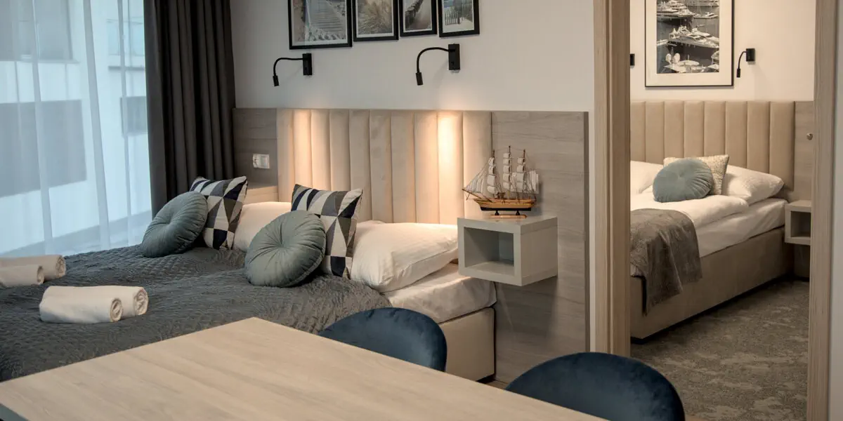 - Codzienne śniadania - Codzienne obiadokolacje - Powitalny zestaw do parzenia kawy (saszetki kawy rozpuszczalnej) i herbaty - Dostawka gratis dla dziecka do 12 r.ż z wyłączeniem Wielkanocy, Majówki i Bożego Ciała 2026r. - Wydawana podczas zameldowania czerwona opaska uprawnia do śniadania i obiadokolacji. Należy ją nosić w widocznym miejscu przez cały okres pobytu - Wstęp do strefy Aquapark: basen rekreacyjny o wymiarach 12 x 6,2 i głębokości 1,20m, jacuzzi, zjeżdżalnia pontonowa, akcesoria: leżaki, makaroniki do pływania (zgodnie z dostępnością) - Wstęp do strefy Wellness&SPA: sauna fińska, łaźnia rzymska, grota solna z tężnią i ścianką solankową - Dla dzieci wstęp do wewnętrznej sali zabaw - Korzystanie z atrakcji - bilard, piłkarzyki, cymbergaj, ping-pong - Bezpłatne wypożyczenie sprzętu do Nordic Walking - Możliwość ładowania rowerów elektrycznych - Powitalny prezent dla czworonogów - Pobyt pupili tylko w części apartamentowej obiektu, zwierzęta nie są przyjmowane w żadnym pokoju typu Komfort - Grill pod chmurką - Internet Wi-Fi - Podatek VAT