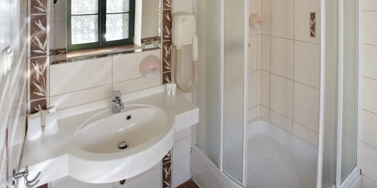 Komfortowy dwuosobowy pokój wyposażony w telewizor z płaskim ekranem, bezprzewodowy internet, czajnik elektryczny oraz łazienkę kabiną prysznicową.