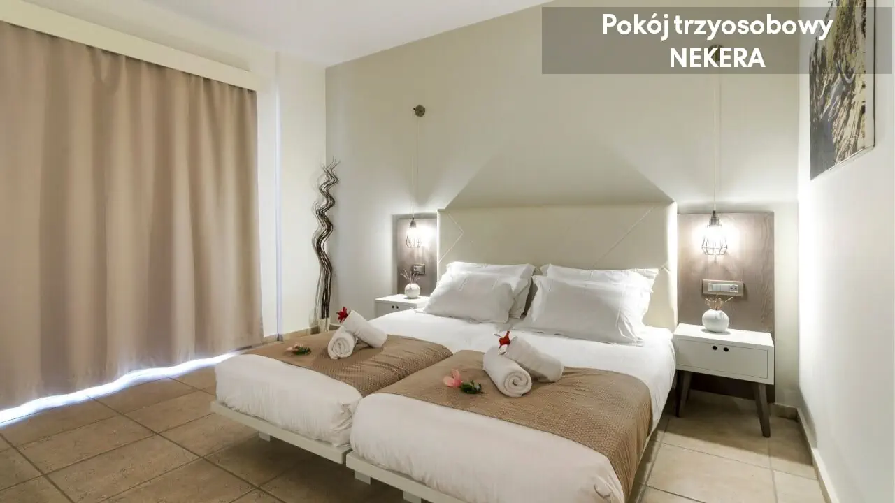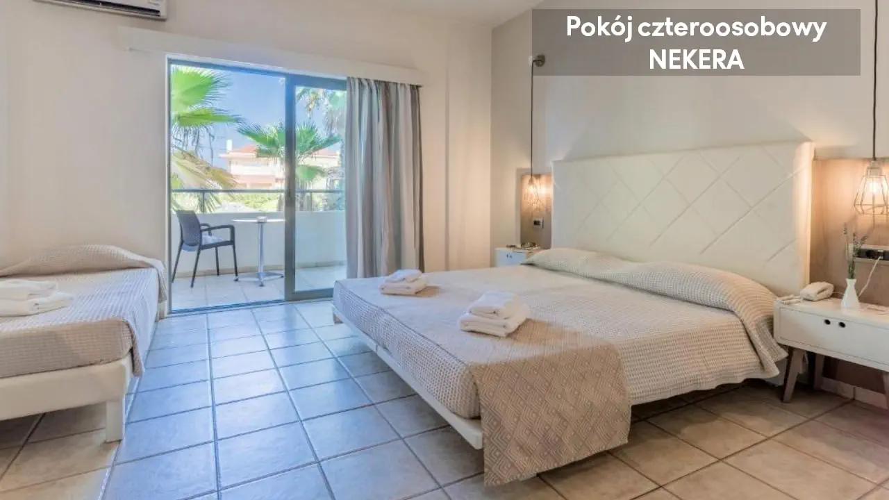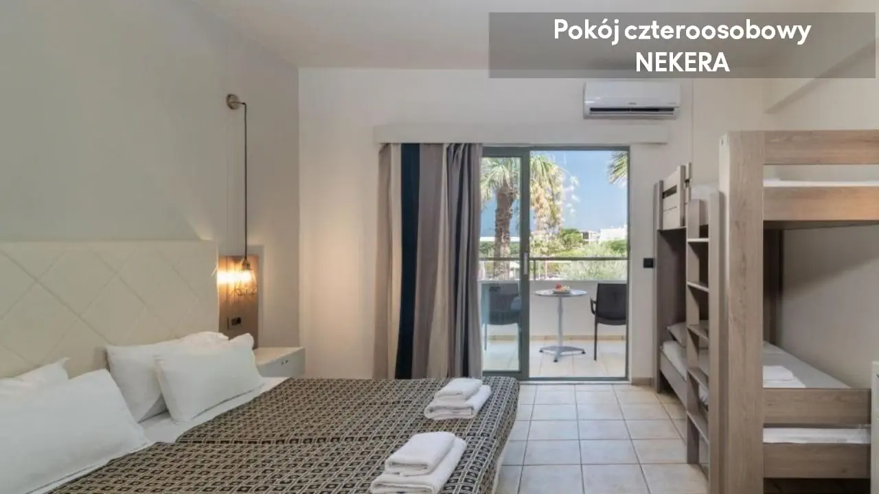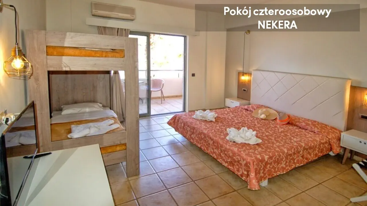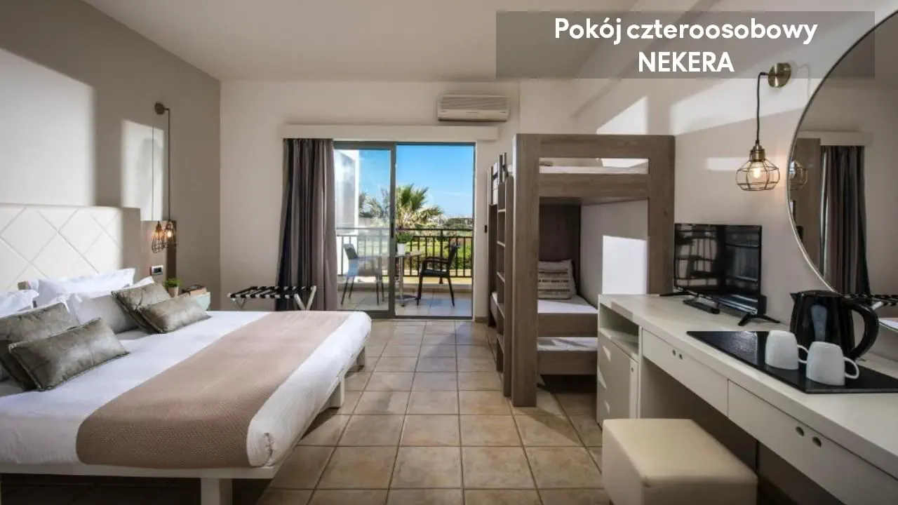 Noclegi, wyżywienie zgodnie z rezerwacją. Dodatkowo w przypadku imprez pakietowych z przelotem, oprócz ww. świadczeń w cenie zawarty jest: ubezpieczenie podstawowe (8000 EUR KL i 2000 EUR NNW) przelot, opłata lotniskowa, opłata za wylot z lotniska lokalnego, transfer lotnisko-hotel-lotnisko (chyba, że dana oferta stanowi inaczej jak np. zakup hotelu z dojazdem własnym). W sezonie letnim tj. w okresie od 22.05 do 09.10 br. oferujemy bezpośrednią opiekę polskojęzycznego rezydenta na miejscu. W pozostałym okresie zapewniamy opiekę lokalnego przedstawiciela, a także kontakt telefoniczny lub poprzez czat (na portalu moja.nekera.pl) z polskojęzycznym rezydentem. Podane godziny serwowania posiłków oraz funkcjonowanie poszczególnych elementów infrastruktury hotelowej mogą ulec nieznacznym zmianom, ze względu na sezonowość, siły wyższe i inne okoliczności.