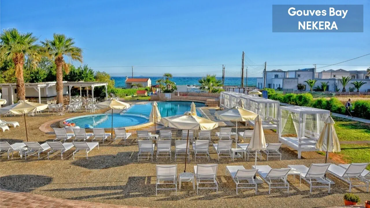 hotel zlokalizownany w cichej, spokojnej okolicy na obrzeżach miasteczka Gouves, ok. 1 km. od centrum. Miasto Hersonissos ok. 10 km; przystanek autobusowy: ok. 300 m; Cretaquarium (nowoczesne akwarium z ponad 200 gatunkami morskich zwierząt): ok. 3 km; Aqua Plus (duży park wodny z licznymi atrakcjami): ok. 9 km; Aquaworld Aquarium & Reptile Rescue Centre (jedno z pierwszych akwariów na Krecie, założone w 1995 roku oraz miejsce ratowania gadów): ok. 8,5 km; Labyrinth Park (park/labirynt inspirowany mitologią grecką): ok. 7,5 km; Malia: ok. 16 km; Pałac Minojski w Malii: ok. 19 km; Port lotniczy w Heraklionie oddalony o ok. 17 km.