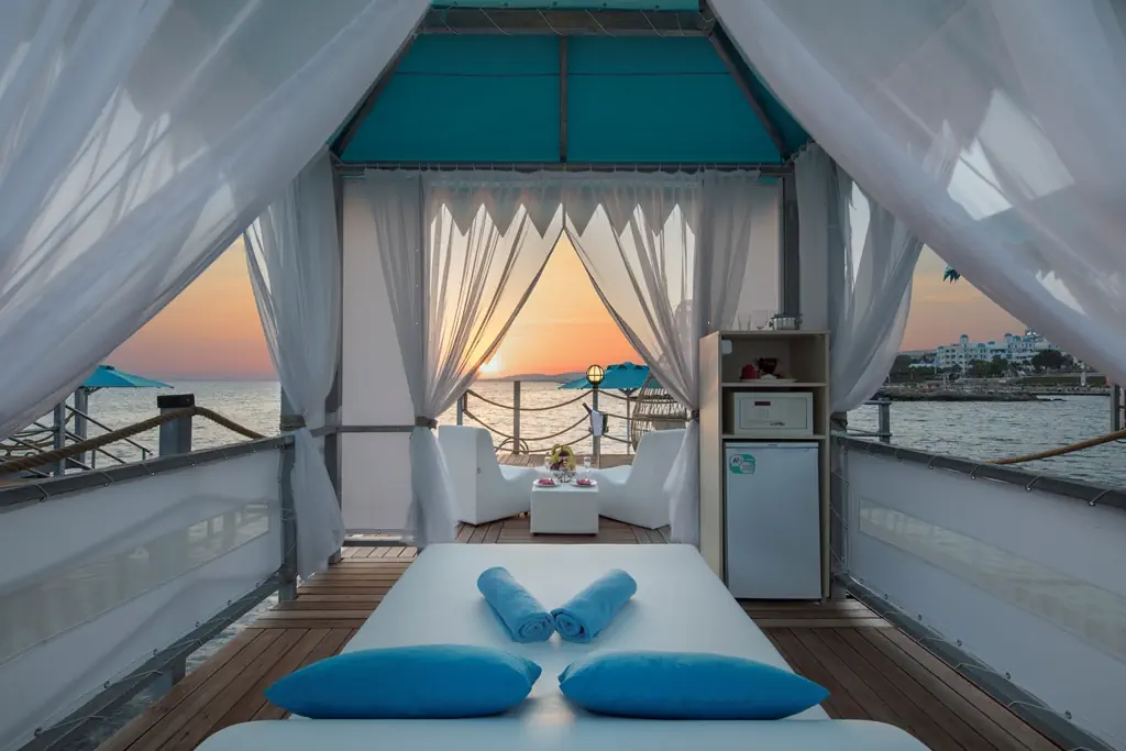 Dla max. 2 osób, Przestrzeń zewnętrzna: Balkon, Kanały telewizji: Angielski, Telefon w pokoju, prysznic, Powierzchnia pokoju: ok. 35 m2, Rodzaj podłogi: płytki, Sprzątanie codziennie, 1 sypialnia, Maksymalna liczba osób dorosłych: 2, Maksymalna liczba dzieci: 0, Od strony morza, Liczba łazienek: 1, Liczba toalet: 1, Zestaw do parzenia kawy i herbaty, Klimatyzacja: Klimatyzacja centralna, Działa w godzinach: 06:00-06:00, przez cały rok