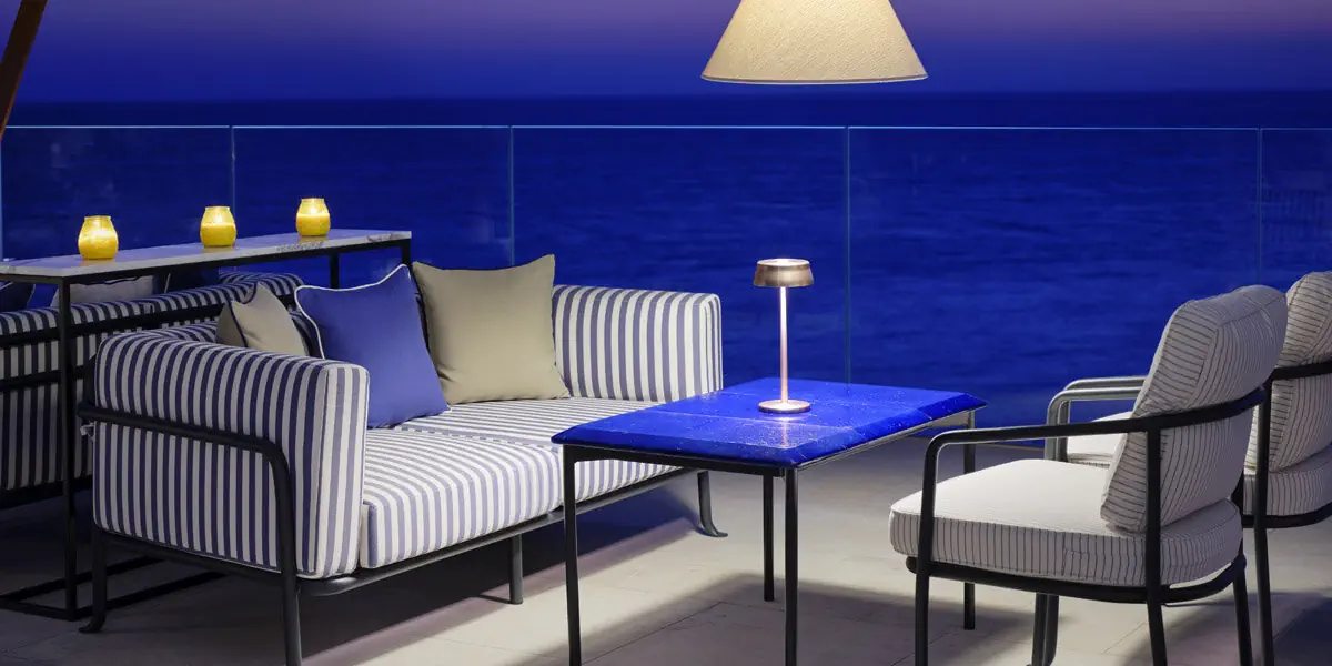 Klimatyzowany pokój (23 m2) z panoramicznym widokiem na morze, wygodami, inteligentnym sterowaniem, łazienką i balkonem wychodzącym na morze
