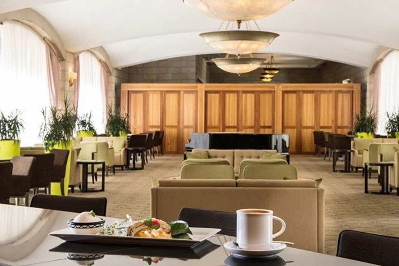 oferuje 442 luksusowe pokoje, w tym duże pokoje rodzinne i specjalnie zaprojektowane pokoje dla osób niepełnosprawnych. Ponadto hotel oferuje różnego rodzaju przestronne apartamenty, w tym apartamenty prezydenckie, apartamenty typu deluxe i mniejsze apartamenty. Wszystkie nowe pokoje są bogato umeblowane iw pełni wyposażone w nowoczesne udogodnienia. Goście hotelowi mogą delektować się posiłkami i napojami w dużej, nasłonecznionej jadalni, na tarasie, w ogrodzie oraz w przyjaznym barze. Kolacja szabatowa może być zarezerwowana tylko z góry i potwierdzona przez hotel. Luksusowy basen i taras słoneczny z widokiem na Stare Miasto to główna atrakcja hotelu. Na terenie hotelu Grand Court znajduje się również centrum fitness. Całości dopełniają baseny dla dzieci i dla dorosłych.