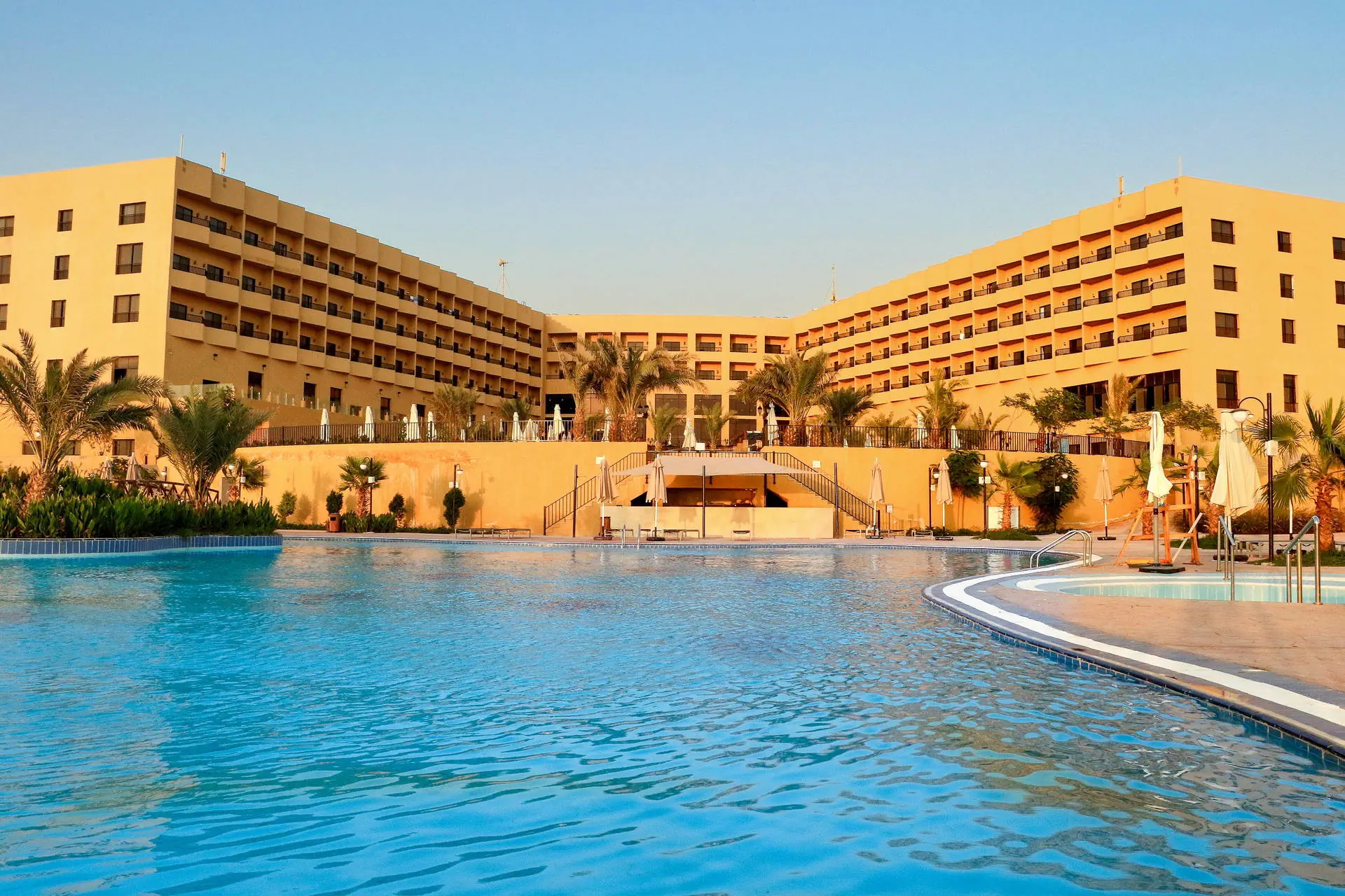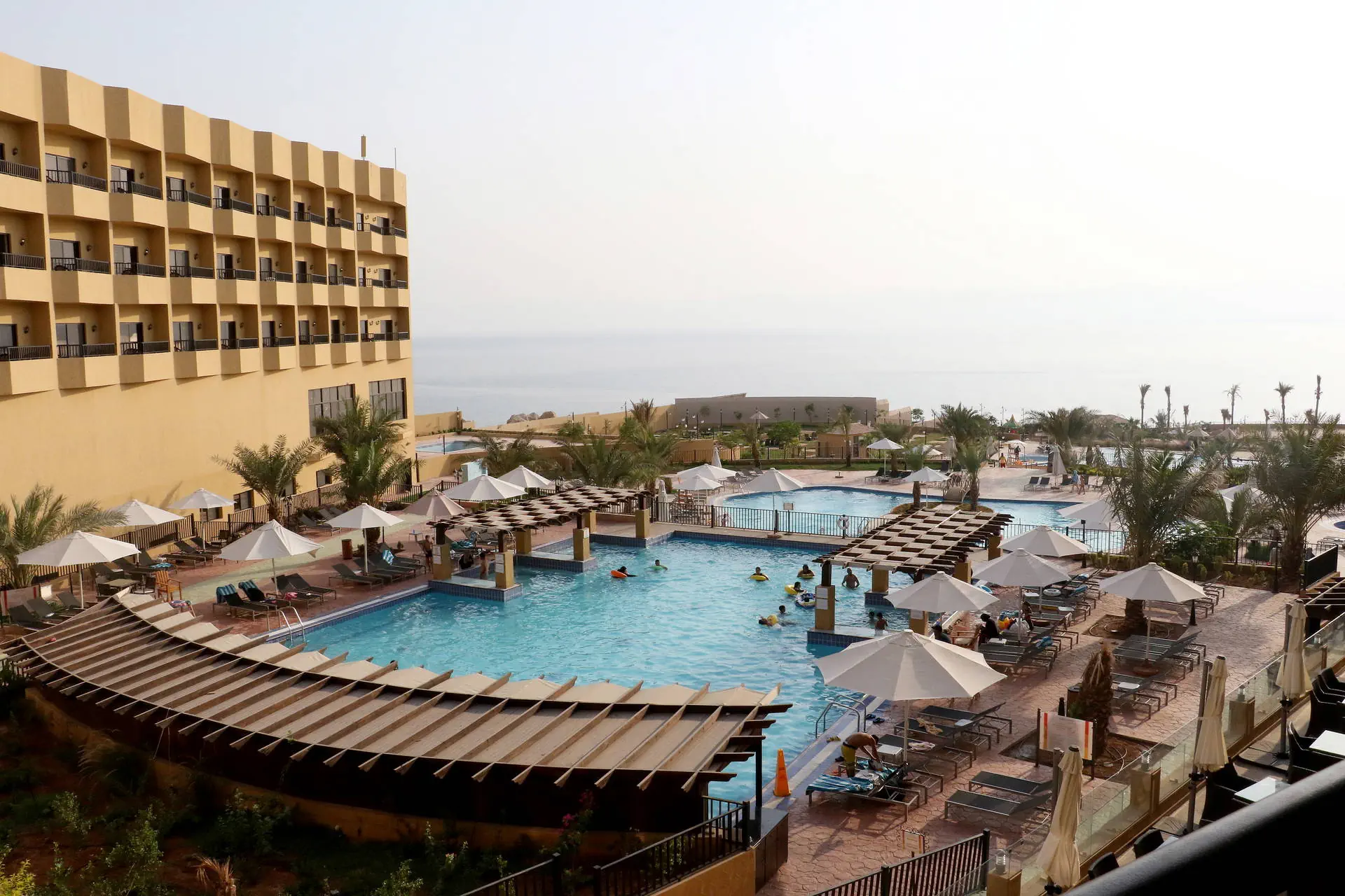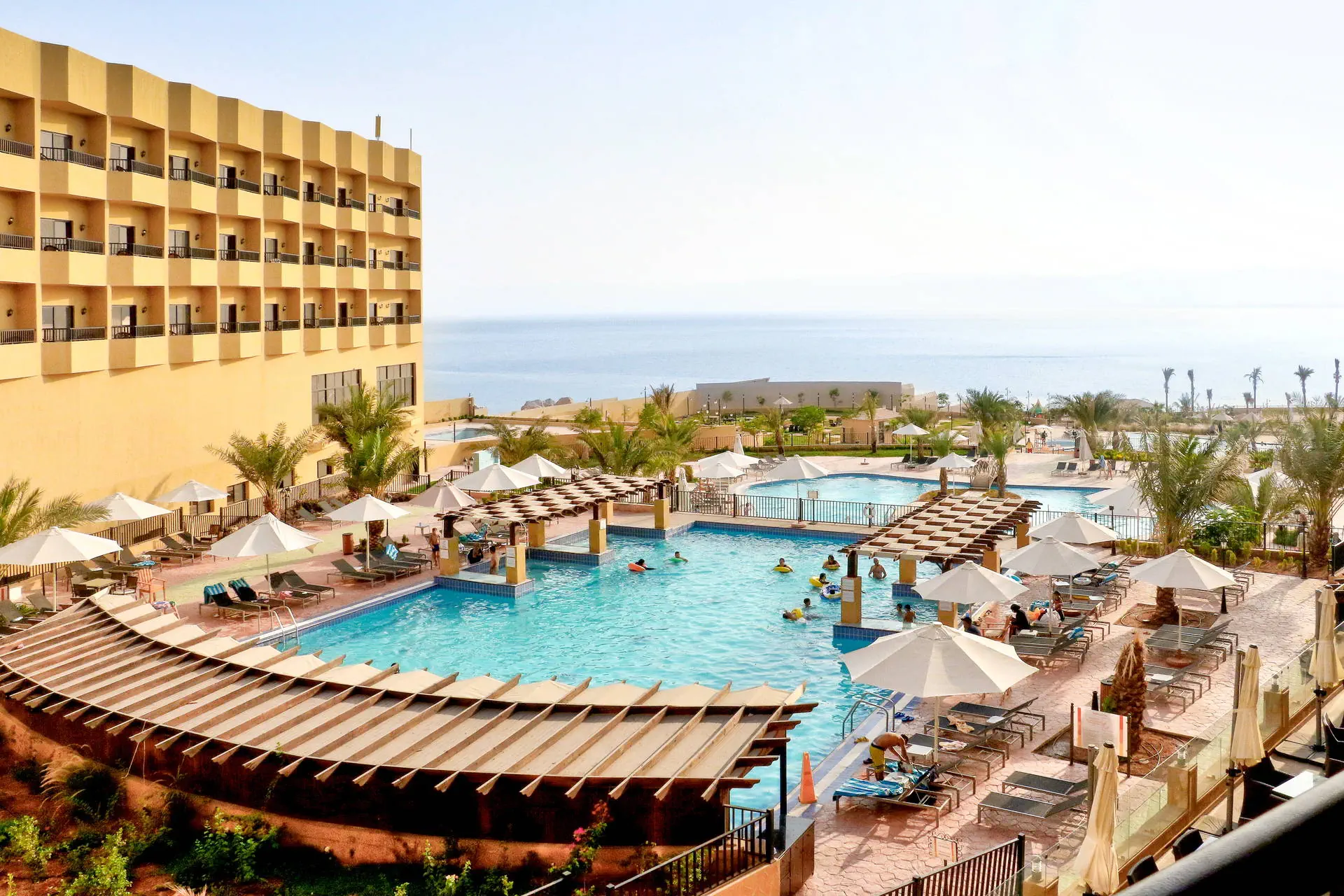 Położenie Luksusowy hotel rozlokowany na dużym terenie tuż przy długiej na 400 m piaszczystej plaży nad Morzem Martwym. Zlokalizowany jest w okolicy rzeki Jordan i Góry Nebo. Do lotniska w Ammanie ok. 60 km. Plaża Hotel usytuowany jest tuż przy długiej (400 m) piaszczysto-żwirowej plaży nad samym Morzem Martwym. Leżaki i parasole na plaży wliczone w cenę. Uwaga: woda w Morzu Martwym jest mocno zasolona, toteż możliwa jest kąpiel (relaksująca ale niedługa). Woda ma dużo dobroczynnych właściwości korzystnie wpływających na organizm ludzki (naturalne SPA). Ze względu na zasolenie i wyporność wody pływanie w morzu nie jest możliwe. Do dyspozycji gości Całodobowa recepcja, lobby, punkt wymiany walut, sklep z pamiątkami, restauracja główna serwująca dania kuchni lokalnej i śródziemnomorskiej oraz 2 restauracje a’la carte, 2 bary ( w tym 1 przy basenie). Na terenie hotelu znajduje się 6 basenów w tym 1 wewnętrzny, 1 tylko dla pań i 1 ze zjeżdżalniami dla dzieci (niektóre z nich podgrzewane zimą) oraz taras słoneczny z leżakami i parasolami dla gości hotelowych w cenie. Pokoje W 3-pietrowym budynku głównym znajduje się 198 komfortowych, przestrzennych pokoi 2 os. (możliwa dostawka dla dziecka) z balkonem (większość pokoi z bocznym widokiem na morze, pokoje z pełnym widokiem na morze dodatkowo płatne); Wszystkie pokoje z łazienką (wanna lub prysznic, WC, suszarka do włosów), TV-sat, telefonem, sejfem i mini lodówką oraz klimatyzacją. W każdym pokoju zestaw do parzenia kawy i herbaty. Wyżywienie Śniadania oraz obiadokolacje w formie bufetu; napoje dodatkowo płatne. Program sportowy i animacyjny zajęcia sportowe, boisko do piłki nożnej i siatkowej, siłownia oraz mini klub dla dzieci. Dostępne centrum SPA – różnorodne zabiegi dodatkowo płatne. Internet Wi-Fi bezpłatne w hotelowym lobby oraz w pokojach. Kategoria lokalna **** - hotel czeka na oficjalne przyznanie 5* w lipcu 2018 r. Naszym zdaniem Elegancki hotel, odpowiedni zarówno dla dorosłych jak i dzieci. Świetna lokalizacja przy samej plaży, duża strefa basenowa z różnorodnymi udogodnieniami oraz zjeżdżalniami a także bogate centrum SPA sprawią, że pobyt tu będzie pełen beztroskiego relaksu. Strona www www.grandeasthotel.com