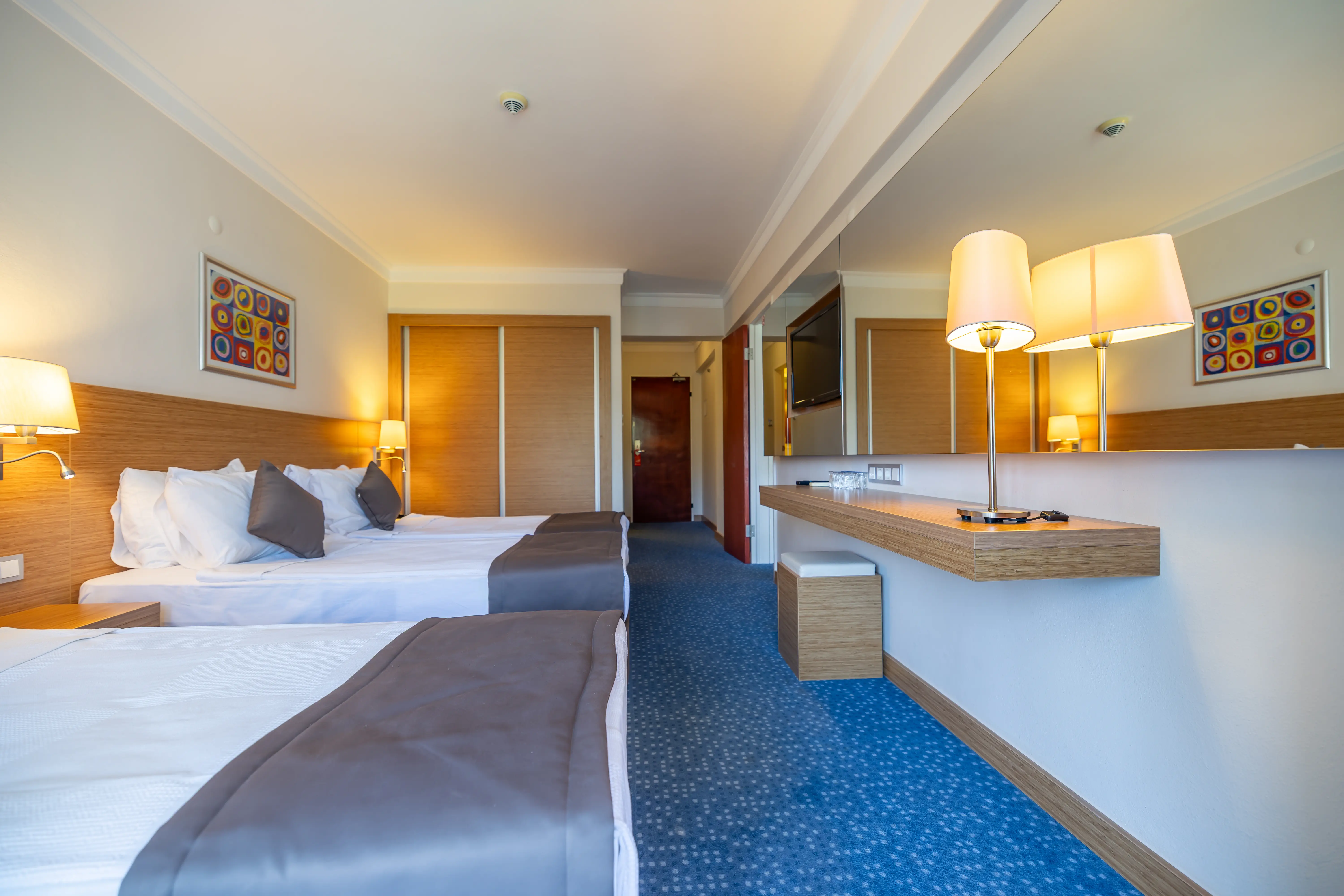 Dla max. 3 osób, Przestrzeń zewnętrzna: Balkon, Kanały telewizji: Polski, Angielski, Telefon w pokoju, prysznic, Powierzchnia pokoju: ok. 24 m2, Dostawka: łóżko rozkładane, Rodzaj podłogi: wykładzina, Sprzątanie cykliczne, 1 sypialnia, Maksymalna liczba osób dorosłych: 3, Maksymalna liczba dzieci: 2, Widok na ogród,Widok na park, Liczba łazienek: 1, Liczba toalet: 1, Klimatyzacja: Klimatyzacja indywidualna