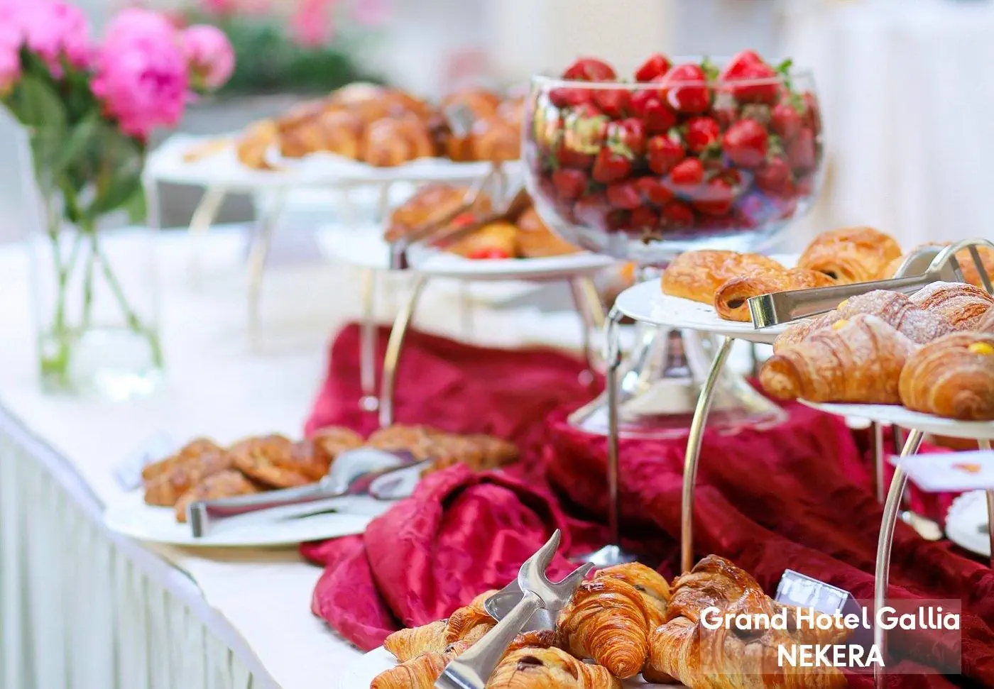 ze śniadaniem. Śniadanie w formie urozmaiconego bufetu.