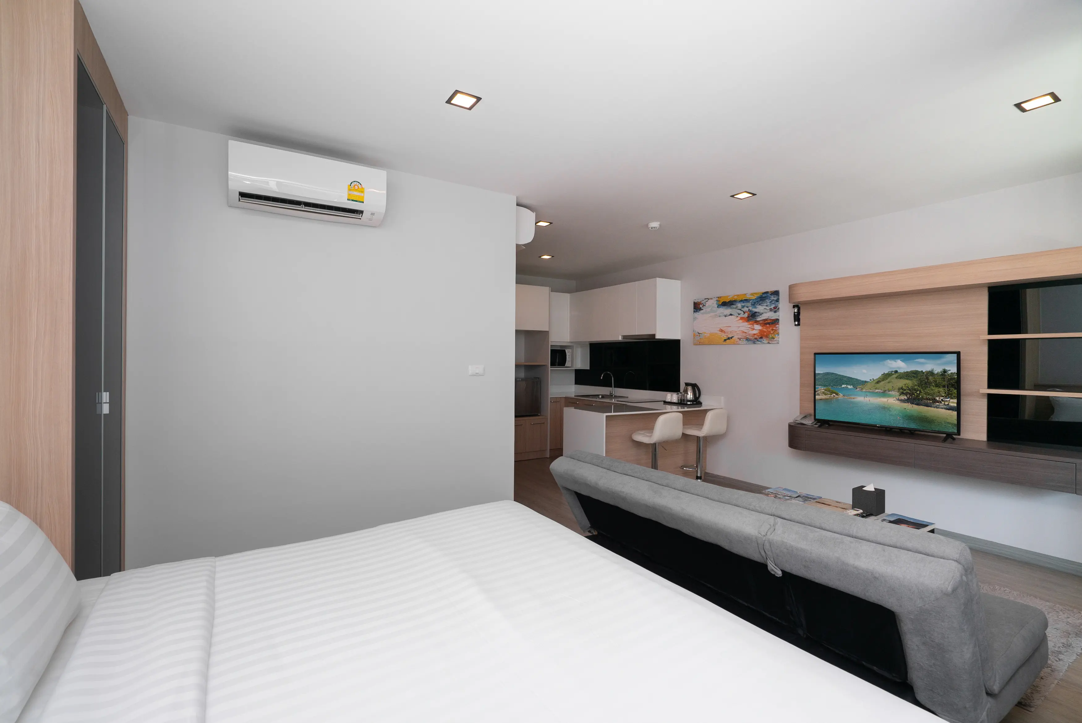 Dla max. 3 osób, Przestrzeń zewnętrzna: Balkon, Telefon w pokoju, Aneks kuchenny, wanna i prysznic , Powierzchnia pokoju: ok. 38 - 52 m2, Dostawka: sofa, Rodzaj podłogi: laminat, Sprzątanie codziennie, 1 sypialnia, Maksymalna liczba osób dorosłych: 3, Maksymalna liczba dzieci: 2, Widok niesprecyzowany , Liczba łazienek: 1, Liczba toalet: 1, Zestaw do parzenia kawy i herbaty, Klimatyzacja: Klimatyzacja indywidualna
