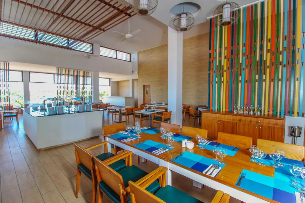 - restauracja główna, restauracje a la carte (4), bary (6) All Inclusive (10:00-01:00) - śniadanie (07:00-10:30), obiad (12:30-15:00), kolacja (19:00-21:30) - wybrane: napoje bezalkoholowe, lokalne napoje alkoholowe Restauracje a la carte Wymagana rezerwacja. - indyjska - bezpłatna (raz w tygodniu) - lokalna - bezpłatna (raz w tygodniu) - włoska - bezpłatna (raz w tygodniu) - owoce morza - bezpłatna (raz w tygodniu)