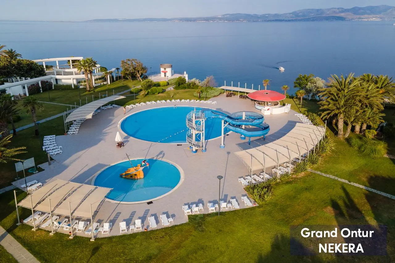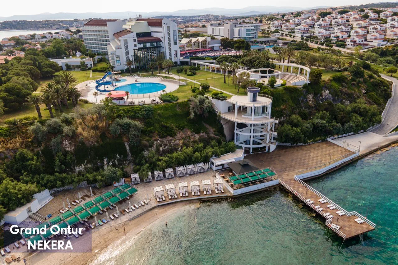 spokojne położenie, ok. 4 km od portu w Dalyan, ok 6 km od XVII zamku w Cesme, najbliższe sklepy znajdują się ok. 6 km d hotelu. Międzynarodowy port lotniczy w Izmirze znajduje się ok. 110 km od hotelu.