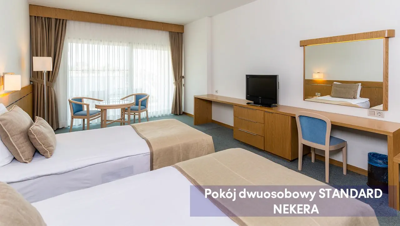 Noclegi, wyżywienie zgodnie z rezerwacją, telefoniczną opiekę rezydenta. Dodatkowo w przypadku imprez pakietowych z przelotem, oprócz ww. świadczeń w cenie zawarty jest: przelot, opłata lotniskowa, opłata za wylot z lotniska lokalnego, transfer lotnisko-hotel-lotnisko (chyba, że dana oferta stanowi inaczej), ubezpieczenie dla imprez turystycznych, bezpośrednia opieka polskojęzycznego rezydenta - w sezonie letnim (wakacyjnym): Kreta, Rodos, Turcja (Riwiera), Majorka, Bułgaria, całorocznie: Malta, na pozostałych kierunkach opieka telefoniczna lub przez czat w serwisie moja.nekera.pl. W przypadku imprez turystycznych opartych o przeloty przewóz bagażu może być nieuwzględniony w cenie. Cena uzależniona jest m.in. od przewoźnika oraz terminu wyjazdu, należy ją zweryfikować podczas zakupu. Linie lotnicze, w których bagaż jest w cenie (20 kg bagaż główny oraz bagaż podręczny) - przeloty czarterowe: Enter Air, LOT (dla wylotów na Rodos), Sky Express, Holiday Europe, European Air Charter, Ryan Sun (dla wylotów na Rodos) oraz przeloty rejsowe: Sun Express, Corendon, Pegasus Airlines, Emirates, Fly Dubai, Quatar Airlines, Air France, Austrian Airlines.Przykładowe linie lotnicze, gdzie bagaż jest dodatkowo płatny to: FR (Ryanair), W6 (WizzAir), Easy Jet. Podane godziny serwowania posiłków oraz funkcjonowania poszczególnych elementów infrastruktury hotelowej mogą ulec nieznacznym zmianom, ze względu na sezonowość, siły wyższe i inne okoliczności. *** Podane godziny serwowania posiłków oraz funkcjonowania poszczególnych elementów infrastruktury hotelowej mogą ulec nieznacznym zmianom, ze względu na sezonowość, siły wyższe i inne okoliczności.