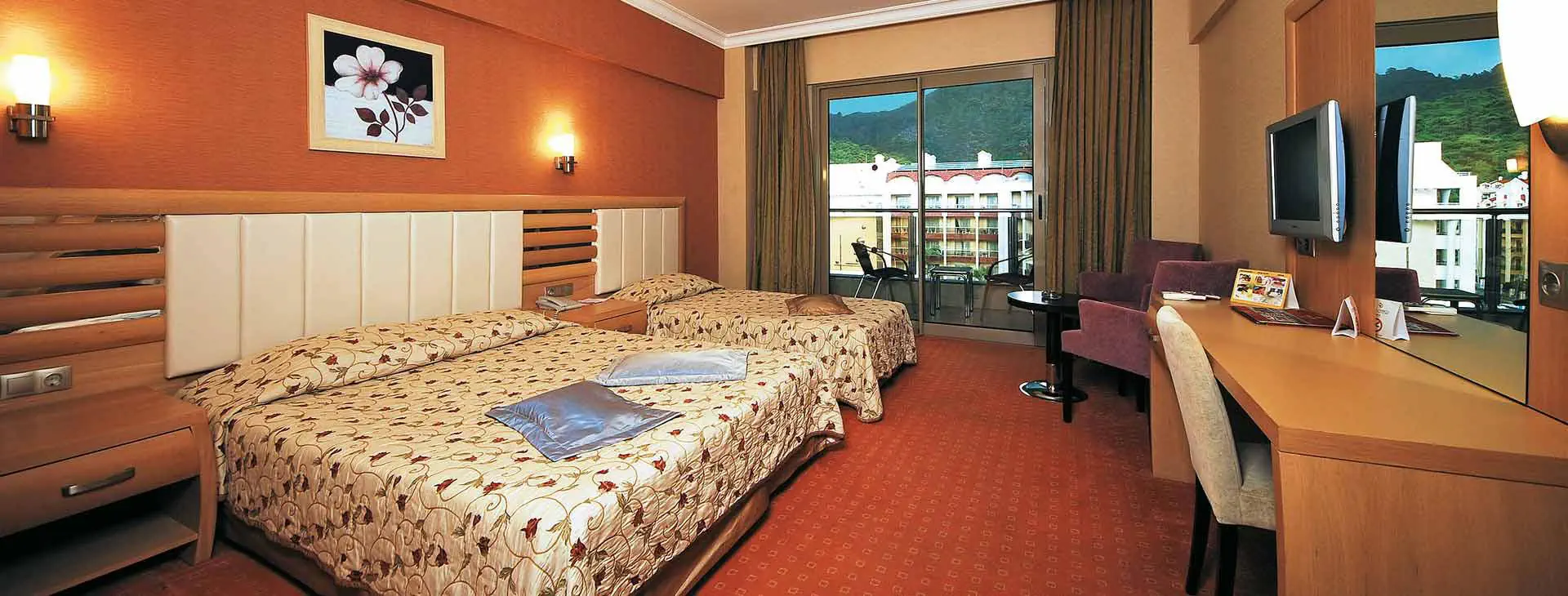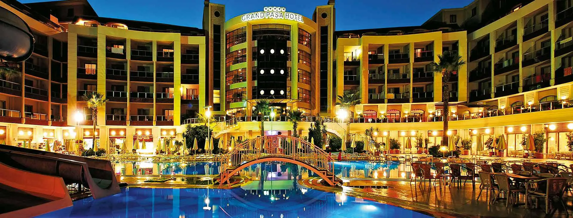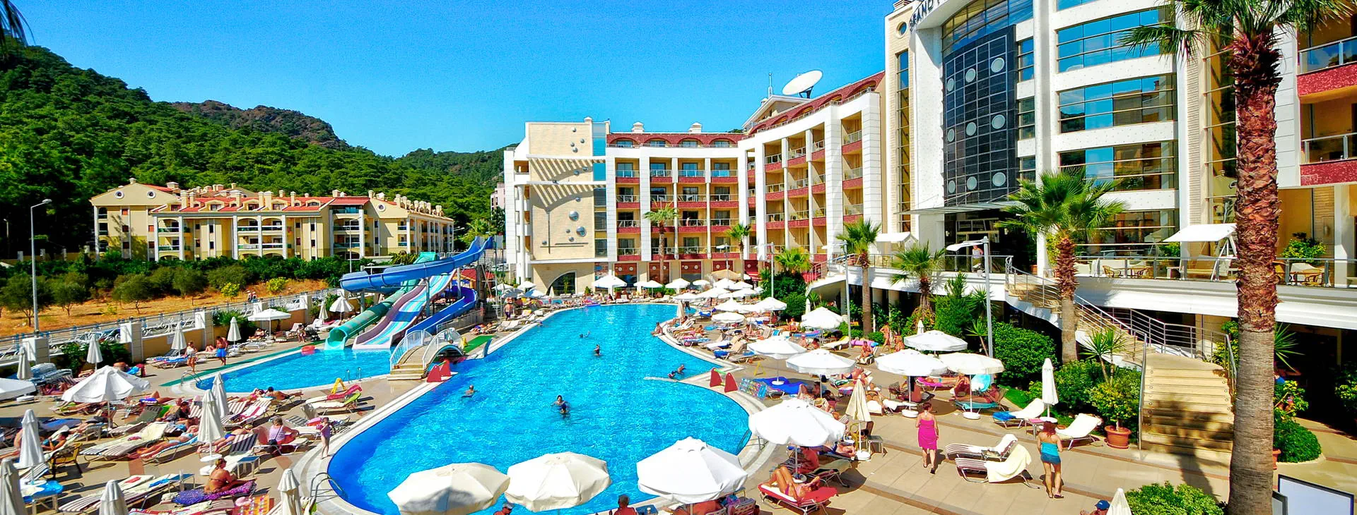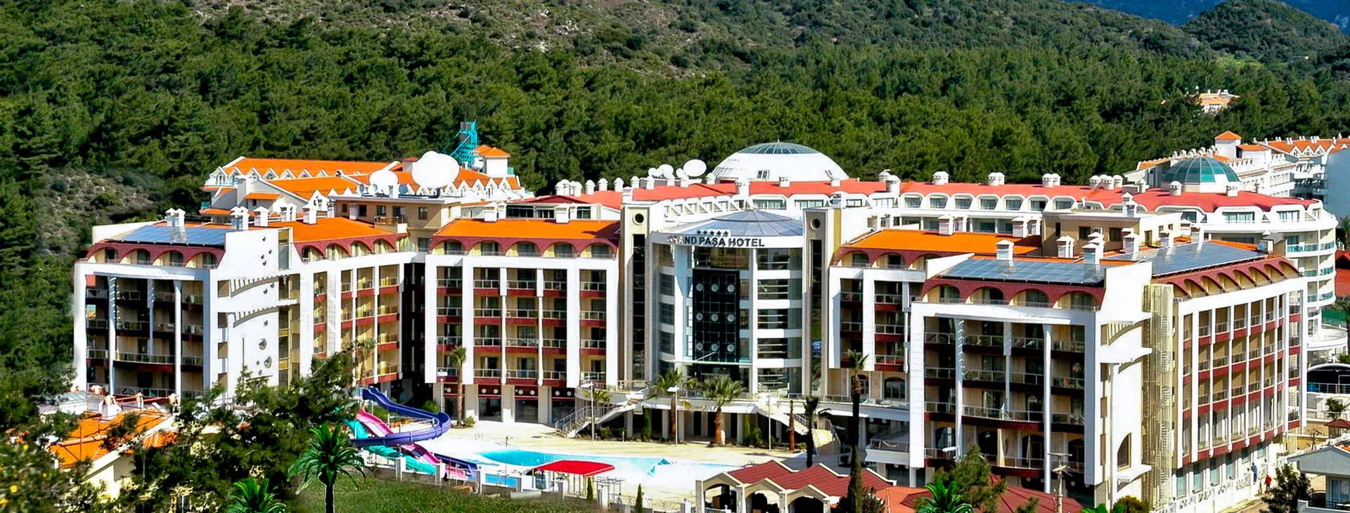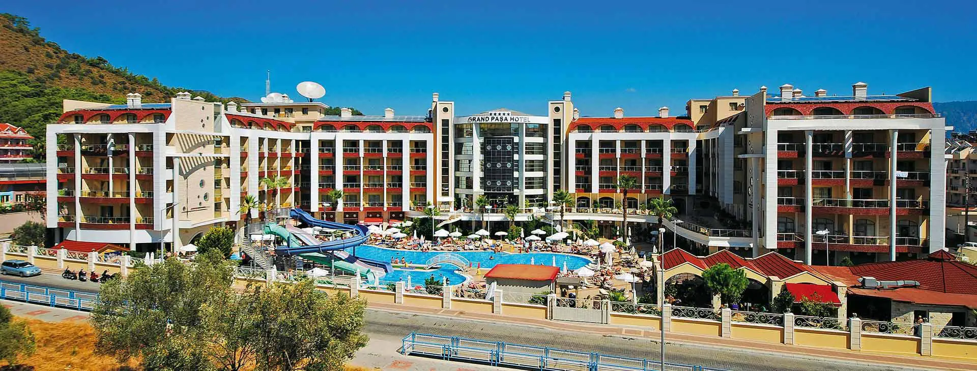 Położenie: Hotel zlokalizowany jest w spokojnej części turystycznej miejscowości Marmaris z szerokim wyborem sklepów, barów, restauracji i klubów, ok. 3 km od ścisłego centrum. Centrum pobliskiej miejscowości Icmeler oddalone jest o ok. 5 km. Do lotniska w Dalamanie ok. 90 km. Plaża: Zadbana, piaszczysto-żwirowa, prywatna plaża znajduje się ok. 1,8 km od hotelu (plaża przy hotelu Pasa Garden, hotelowy busik kursuje na plażę o 09:45 i 10:30, powrót z plaży o ok. 18:00). Bezpłatne leżaki i parasole. Bar przy plaży dodatkowo płatny. Do dyspozycji gości: Recepcja 24 h, restauracja główna, restauracja a’la carte serwująca dania kuchni orientalnej oraz owoce morza, 4 bary: lobby, snack, terrace oraz disco bar. Basen główny, basen ze zjeżdżalniami (otwarte w godz. 10:00-12:00 i 14:00-16:00), brodzik dla dzieci, basen kryty z wydzielonym brodzikiem dla dzieci. Ręczniki kąpielowe, leżaki i parasole przy basenie bezpłatne. Za opłatą: room service, lekarz, fryzjer, market. Na zapytanie i za opłatą dostępne usługi opiekunki dla dzieci. Pokoje: 280 luksusowo urządzonych pokoi. Pokoje standardowe, o pow. ok. 28 m2, mogące zakwaterować max 3 os. dorosłe (dostawka w formie normalnego łóżka), wyposażone są w: łazienkę z prysznicem lub wanną, suszarkę do włosów, indywidualnie sterowaną klimatyzację, TV Sat., telefon, sejf (ok. 2 EUR/dzień), minibar (bezpłatna woda w dniu przyjazdu, pozostała konsumpcja za opłatą), część wypoczynkową oraz balkon z widokiem na basen, las piniowy lub otoczenie hotelu. Możliwość wstawienia bezpłatnie łóżeczka dla dziecka do 2 lat. Hotel posiada 3 pokoje przystosowane dla osób niepełnosprawnych. Wyżywienie: All Inclusive: śniadanie (07:30-10:00), późne śniadanie (10:00-11:00), lunch (12:30-14:00), obiadokolacja (19:30-21:30) w formie bufetu, przekąski w ciągu dnia, placki gozleme, kawa/herbata oraz nocna przekąska (23:00-24:00). Raz na pobyt możliwość skorzystania z restauracji a’la carte po wcześniejszej rezerwacji (opłata rezerwacyjna ok. 5 EUR/os.). Lokalne napoje bezalkoholowe i alkoholowe (10:00-24:00). Płatne dodatkowo: importowane napoje bezalkoholowe i alkoholowe, lokalne napoje bezalkoholowe i alkoholowe po godz. 24:00 oraz soki ze świeżych owoców. Dania dla dzieci oraz wysokie krzesła dostępne w restauracji. Program sportowy i animacyjny: Hotel organizuje dzienne i wieczorne animacje w wersji soft, wieczory przy muzyce na żywo, karaoke oraz wieczorne show w niektóre dni. Ponadto: siłownia, sauna i łaźnia turecka (09:00-18:00), aqua aerobic, piłka wodna, tenis stołowy, rzutki, mini klub dla dzieci. Za dodatkową opłatą: zabiegi i masaże w centrum SPA, bilard. Internet: Bezpłatny Internet Wi-Fi w lobby. Kategoria lokalna: ***** Strona www: