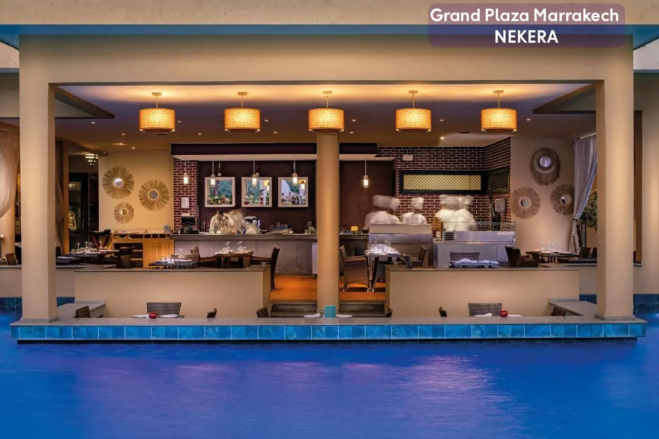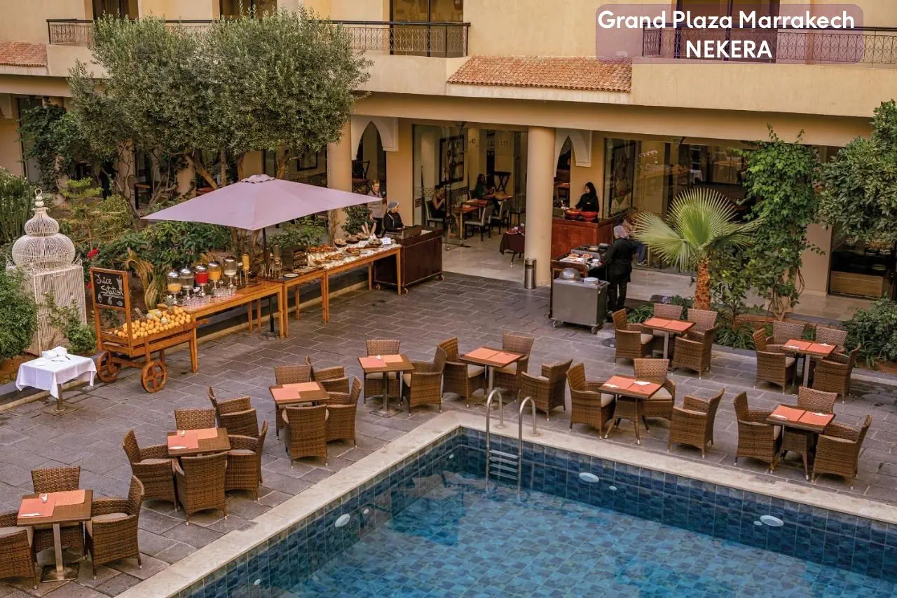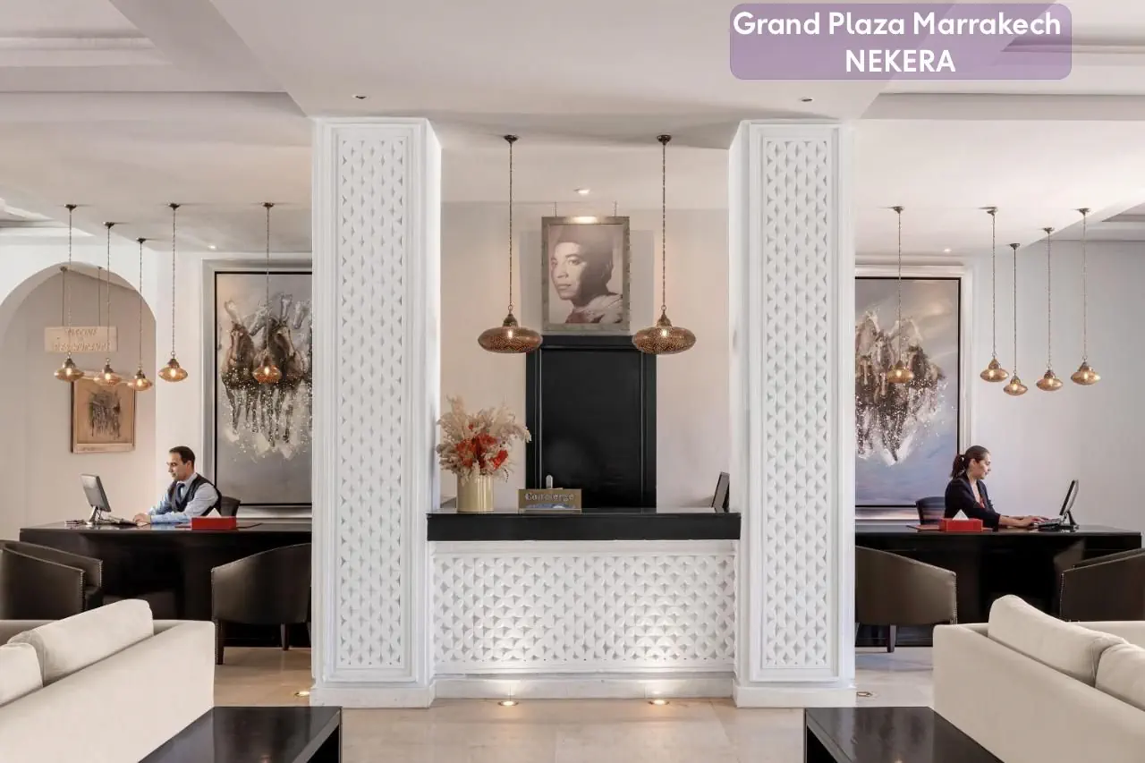 Grand Plaza Marrakech to elegancki, czterogwiazdkowy hotel położony w tętniącej życiem dzielnicy Guéliz, naprzeciwko dworca kolejowego i Teatru Królewskiego. Zaledwie 3 km dzieli go od historycznej medyny oraz słynnego placu Jemaa el-Fnaa. To idealny wybór dla osób pragnących połączyć komfort nowoczesnego hotelu z bliskością głównych atrakcji turystycznych miasta.