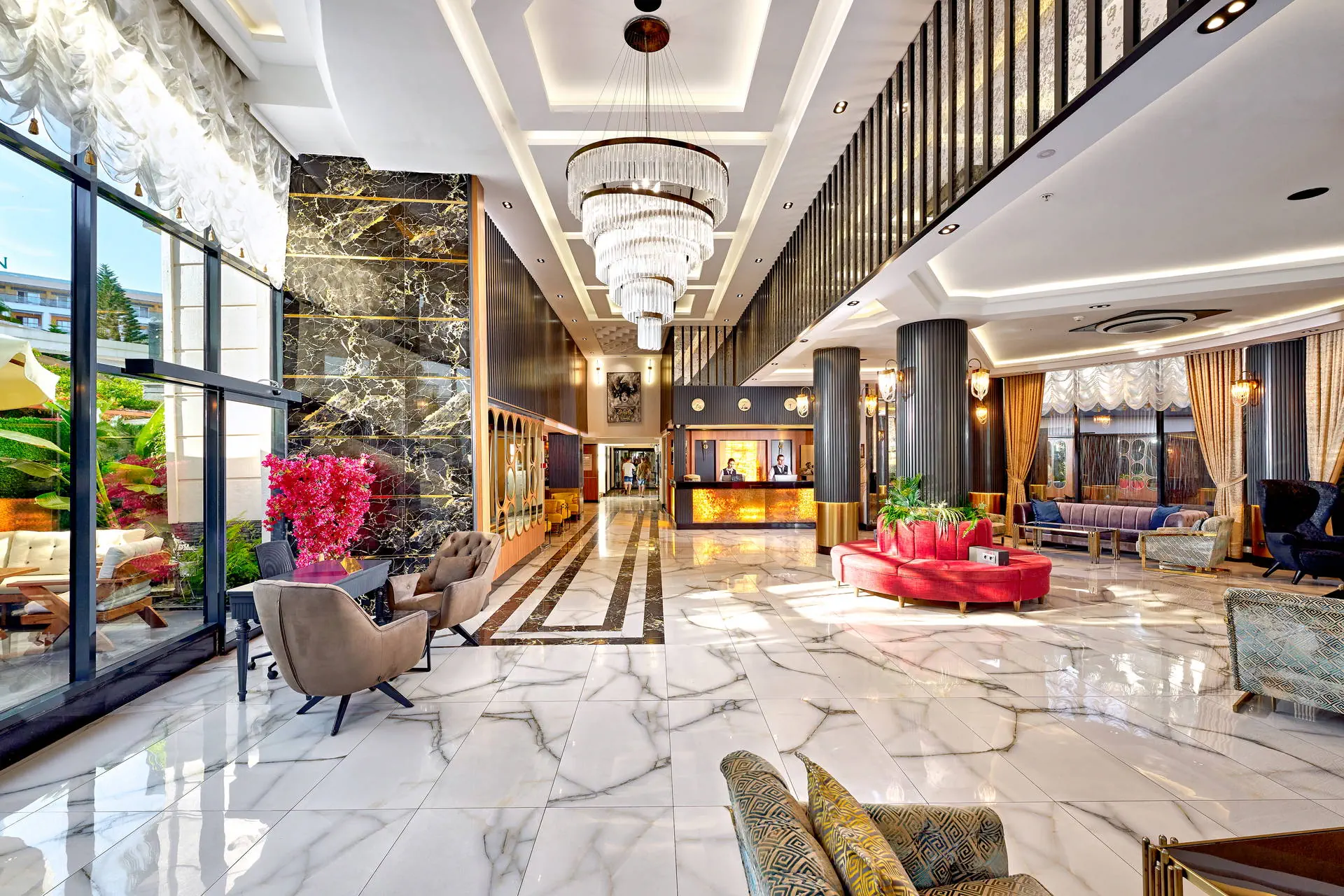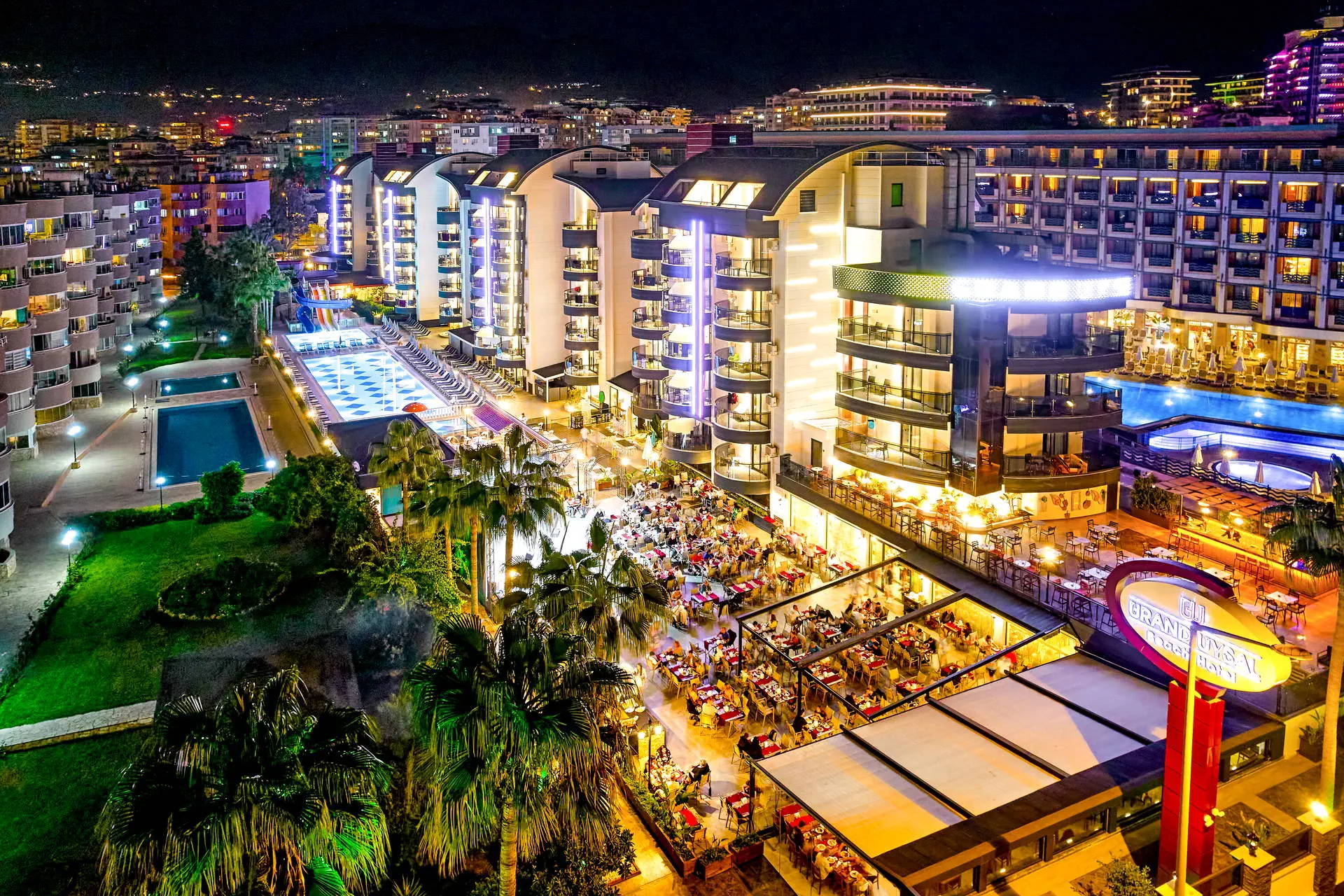 Położenie Do lotniska w Antalyi jest około 125 km. Obiekt zlokalizowany jest blisko centrum Alanyi, w odległości około 4 km. Do centrum miasta z twierdzą i portem jachtowym jest około 1 km. W pobliżu znajduje się wiele sklepów, restauracji i barów. Plaża Mała prywatna plaża. Na plażę prowadzi przejście podziemne. Leżaki, parasole, materace oraz ręczniki plażowe dostępne bezpłatnie. Do dyspozycji gości Recepcja 24h/7, lobby. 3 baseny, w tym jeden ze zjeżdżalniami, leżaki i parasole dostępne bezpłatnie, ręczniki kąpielowe wydawane za depozytem ok. 5 EUR/szt. Restauracje: restauracja główna, 4 bary: Lobby Bar, Restaurant Bar, Pool Bar, Beach Bar. Dodatkowo płatne: sklepy, fryzjer, lekarz, wypożyczalnia samochodów. Wyżywienie Rodzaje wyżywienia i posiłki: All Inclusive: Śniadanie: 07:00 - 09:30. Późne śniadanie: 09:30 - 10:00. Lunch: 12:30 - 14:00. Obiadokolacja: 19:00 - 21:00; posiłki w formie bogatego bufetu w restauracji głównej. Nocna zupa: 23:00 - 24:00. Bary: Bar przy basenie: przekąski 12:00 - 17:00, desery, kawa i herbata 17:00 - 18:00, lody 15:00 - 17:00, napoje bezalkoholowe oraz lokalne alkohole 10:00 - 24:00. Bar w lobby: ciastka, ciasta, kawa i herbata 11:00 - 24:00, lokalne napoje bezalkoholowe 08:00 - 24:00. Bar na plaży: napoje bezalkoholowe 10:00 - 18:00. Bar w restauracji: napoje bezalkoholowe oraz lokalne alkohole podczas posiłków. Pozostałe informacje: Płatne dodatkowo: importowane alkohole, świeżo wyciskane soki, wybrane drinki, lody, kawa po turecku, kawa mrożona oraz napoje po 24:00. Program sportowy i animacyjny Dla każdego: dzienny i wieczorny program animacji, pokazy (akrobacje, magik), zabawy przy basenie, aqua aerobik, piłka wodna, rzutki, tenis stołowy, siłownia. Dla dzieci: mini club (czynny w określonych godzinach), gry i zabawy, plac zabaw, mini disco. Za dodatkową opłatą: pokój z automatami do gier, centrum SPA (sauna, łaźnia turecka, masaże i zabiegi), sporty wodne przy plaży. Internet Internet Wi-Fi w lobby dostępny bezpłatnie, w pozostałych częściach hotelu dodatkowo płatny. Kategoria lokalna ***** Naszym zdaniem Znakomita lokalizacja blisko plaży oraz w pobliżu bogatej oferty życia nocnego, jaką daje Alanya. Elegancki i nowoczesny hotel z bardzo dobrymi opiniami. Strona www www.granduysal.com