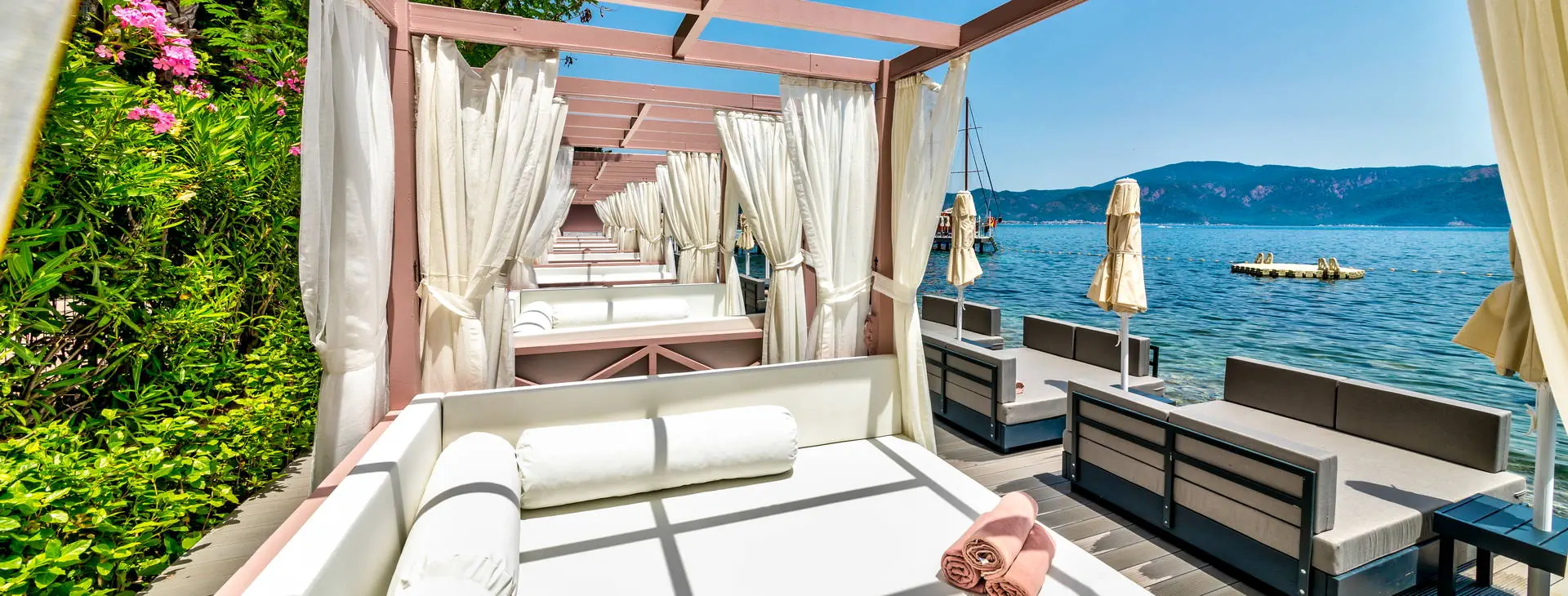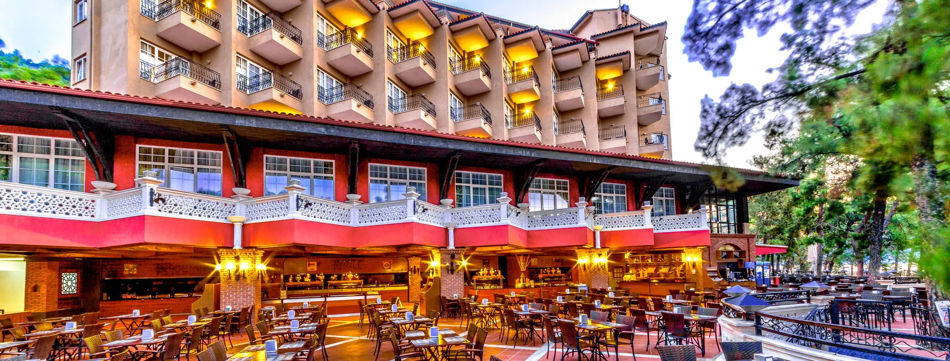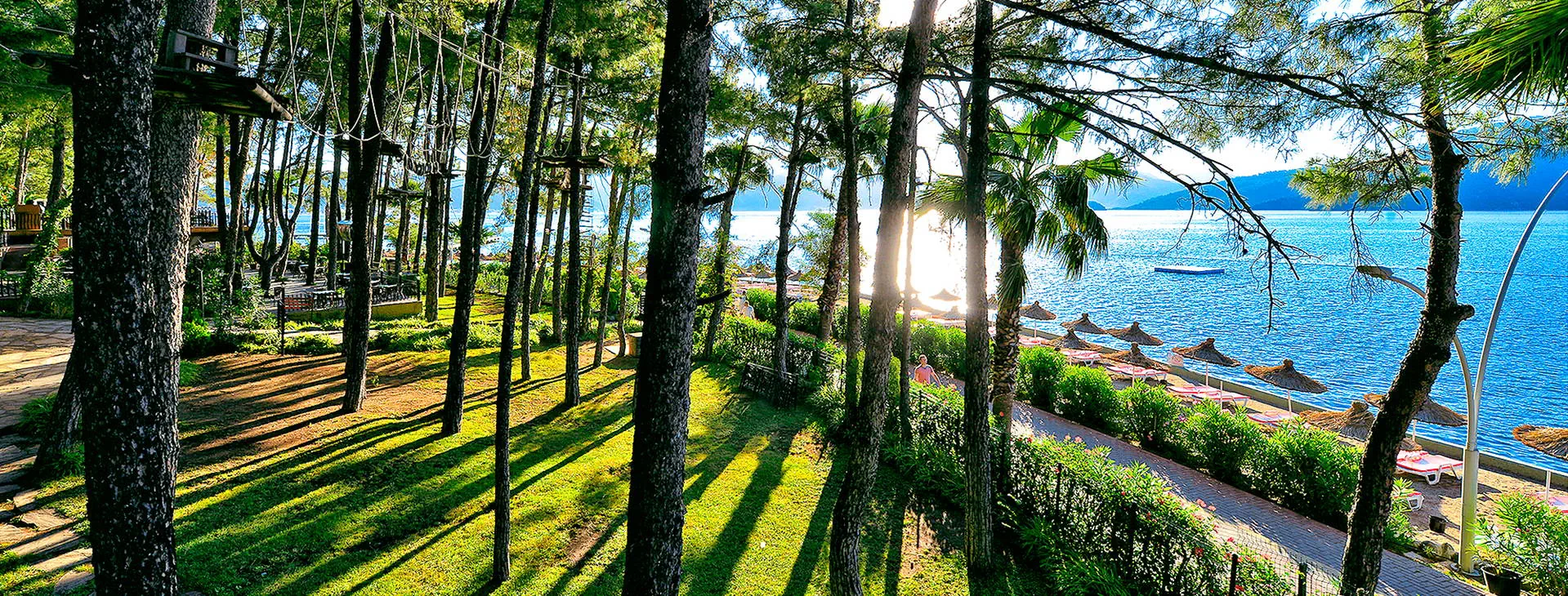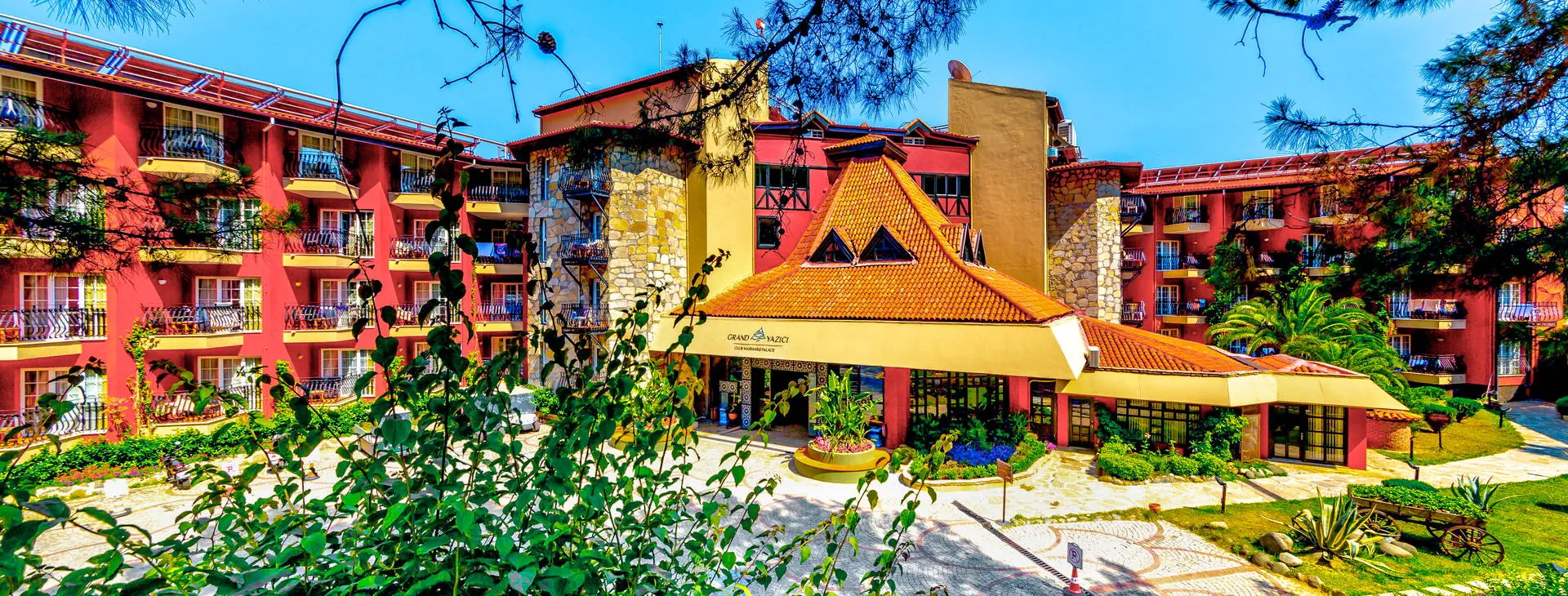 Położenie: Kompleks Grand Yazici Marmaris Palace położony jest w spokojnej okolicy, na dużym zielonym terenie, pośród sosnowo-palmowego lasu. Do pobliskiego Icmeler ok. 2 km, do Marmaris ok. 6 km. Do lotniska w Dalamanie ok. 90 km. Tuż przed hotelem rozciąga się promenada, którą można dojść do centrum Marmaris. Plaża: Hotel położony jest tuż przy piaszczysto-żwirowej prywatnej plaży na platformie z elegancko zagospodarowanym pomostem. Zejście do morza po drabince. Leżaki, poduchy, ręcznikii parasole dostępne bezpłatnie. Do dyspozycji gości: Recepcja 24 h, restauracja główna oraz 3 restauracje a’la carte: turecka, włoska (bezpłatnie)i rybna (płatne dodatkowo, wymagana wcześniejsza rezerwacja), 8 barów, m.in: przy basenie, na plaży oraz bar w lobby. Ponadto: 4 baseny, 1 zjeżdżalnia wijąca się między drzewami, brodzik dla dzieci. Bezpłatne leżaki, parasole oraz ręczniki kąpielowe dostępne przy basenach. Wyżywienie: All Inclusive: śniadanie (07.00-10.00), późne śniadanie (10:00-10:30), lunch (12:30-14:00), obiadokolacja (18:30-21:30) serwowane w formie bufetu. Przekąski w ciągu dnia (11:00-17:00), cukiernia (11:00-18:00), nocne przekąski (23:00-06:00). Lokalne napoje bezalkoholowe i alkoholowe (10:00-00:30). Płatne dodatkowo: napoje serwowane w godzinach 00:30-10:00, importowane napoje bezalkoholowe i alkoholowe, kawa po turecku i świeżo wyciskane soki. Program sportowy i animacyjny: Hotel prowadzi bogaty program animacyjny w ciągu dnia i wieczorami: gry i zabawy przy basenie, wieczorne show, wieczór turecki. Ponadto: boisko do siatkówki plażowej, mini piłka nożna, mini koszykówka, boccia, rzutki, rowery wodne. Korty tenisowe, bilard, tenis stołowy - bezpłatne, wymagany depozyt. Płatne dodatkowo: centrum SPA, sporty wodne na plaży, wypożyczalnia rowerów. Dla dzieci mini klub. Internet: Bezpłatny Internet Wi-Fi dostępny na terenie całego hotelu. Kategoria lokalna: ***** Strona www: