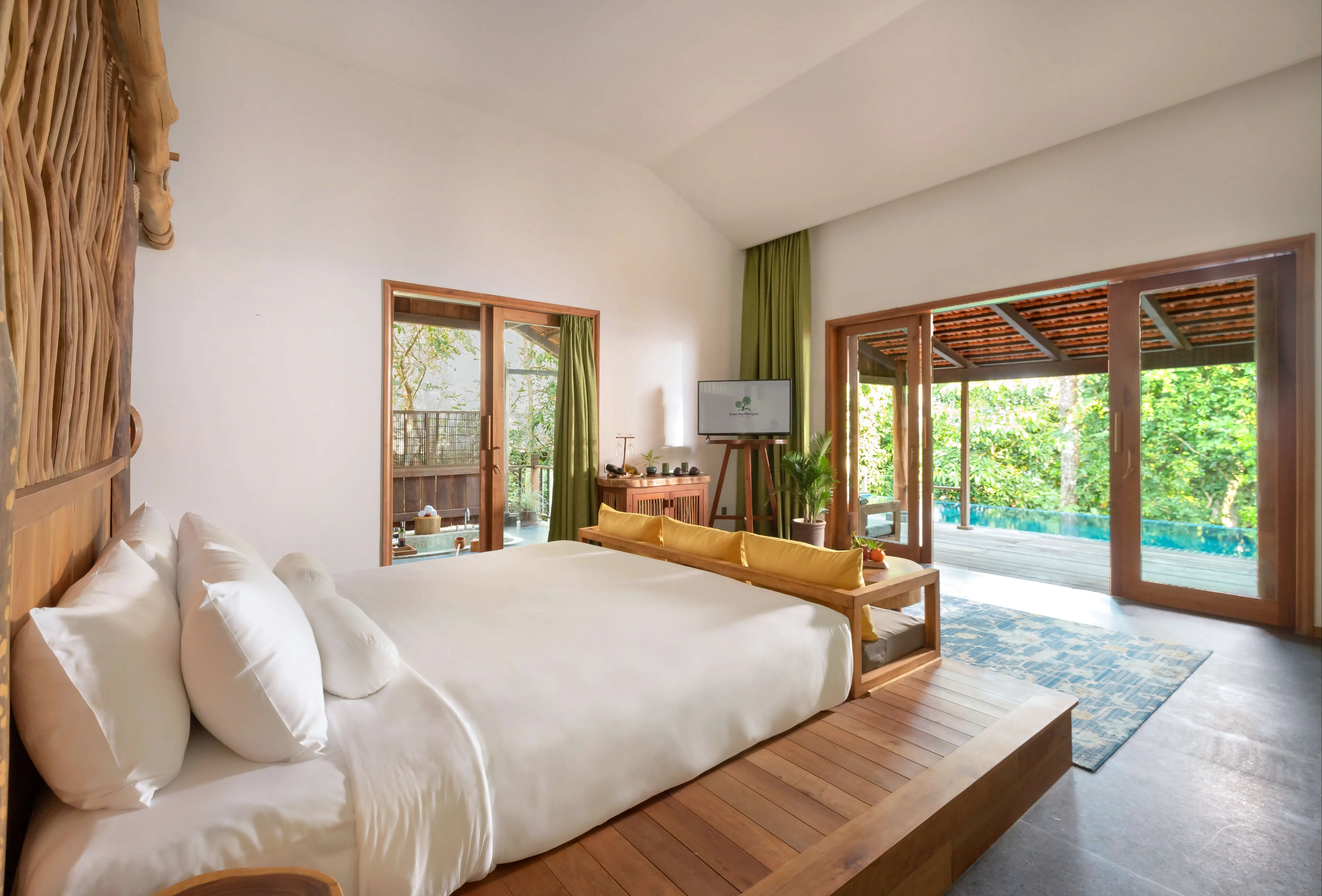 Dla max. 6 osób, Przestrzeń zewnętrzna: Taras, Kanały telewizji: Angielski, Telefon w pokoju, wanna i prysznic , Powierzchnia pokoju: ok. 260 - 265 m2, Dostawka: łóżko standardowe, Rodzaj podłogi: płytki, Sprzątanie codziennie, Salon, Jadalnia , część jadalniana, miejsce do pracy, 2 sypialnie, Drzwi łączące między pokojami, Maksymalna liczba osób dorosłych: 5, Maksymalna liczba dzieci: 2, Kwiaty i owoce, Bezpłatna pralnia, Prysznic na świeżym powietrzu, Widok na ogród,Widok na morze, Bezpośredni dostęp do plaży, Wyjście do wspólnego basenu, Prywatny basen, Liczba łazienek: 2, Liczba toalet: 2, Zestaw do parzenia kawy i herbaty, Klimatyzacja: Klimatyzacja indywidualna