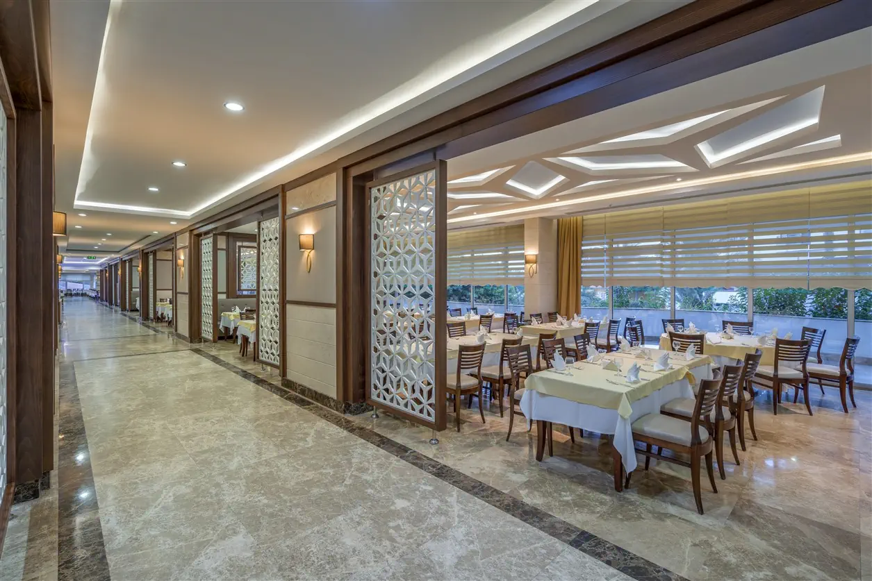 Śniadanie (07:00 - 10:00) - Main Restaurant, stół szwedzki, Późne śniadanie (10:00 - 11:00) - Main Restaurant, stół szwedzki, Obiad (12:30 - 14:30) - Main Restaurant, stół szwedzki, Przekąski (12:00 - 15:45) - Snack Restaurant, stół szwedzki, Podwieczorek (16:30 - 17:30) - Green Bar, stół szwedzki, Kolacja (19:00 - 21:00) - Main Restaurant, stół szwedzki, Późna kolacja (23:30 - 00:30) - Main Restaurant, stół szwedzki, Akdeniz Alacarte Restaurant (19:00 - 21:00) (19:00 - 21:00), bez limitu, Kuchnia: śródziemnomorska, Wymagana rezerwacja: Tak ¹⁾, Italyan Alacarte Restaurant (19:00 - 21:00) (19:00 - 21:00), bez limitu, Kuchnia: Włoska, Wymagana rezerwacja: Tak ¹⁾, Green Bar (10:00 - 02:00), Napoje: alkohole lokalne, napoje bezalkoholowe (10:00 - 02:00), Green Bar (24h), Napoje: napoje bezalkoholowe (24h), Pool Bar (10:00 - 00:00), Napoje: alkohole lokalne, napoje bezalkoholowe (10:00 - 00:00), Beach Bar (10:00 - 18:00), Napoje: alkohole lokalne, napoje bezalkoholowe (10:00 - 18:00), Disco Bar (23:00 - 01:00), Napoje: alkohole lokalne, napoje bezalkoholowe (23:00 - 01:00), Snack Bar (12:00 - 15:45), Napoje: alkohole lokalne, napoje bezalkoholowe (12:00 - 15:45), Aqua Bar (10:00 - 16:00), Napoje: alkohole lokalne, napoje bezalkoholowe (10:00 - 16:00), napoje bezalkoholowe, alkohole lokalne, wybrane alkohole importowane ¹⁾, lody, pakiety dla nowożeńców, pakiety urodzinowe (na życzenie), room service ¹⁾, Minibar w pokoju ¹⁾ - dodatkowo płatne
