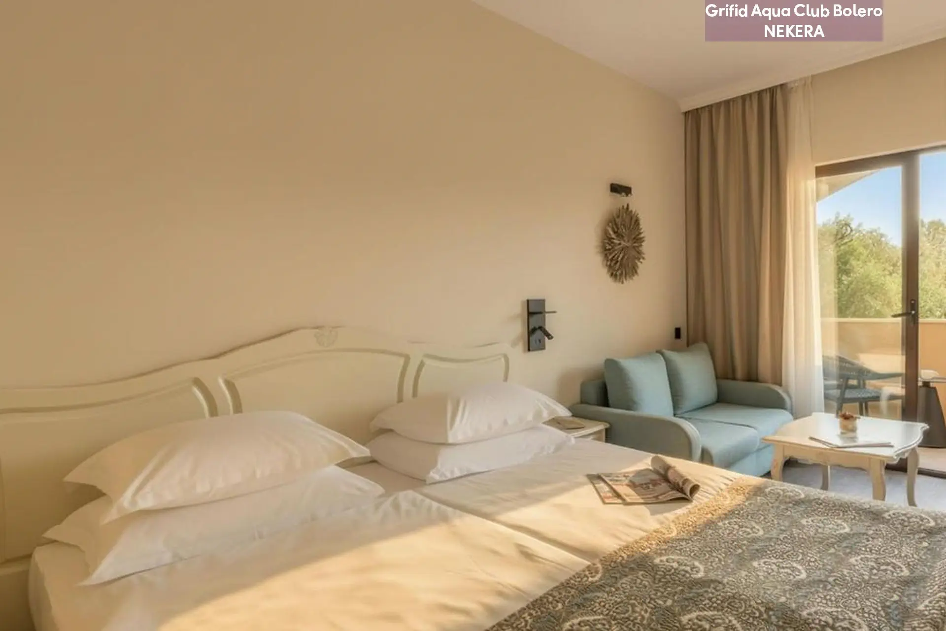 Nowoczesny, rodzinny hotel położony w północnej części Złotych Piasków, oferujący rozbudowaną infrastrukturę rekreacyjną z aquaparkiem oraz bogatą formułę All Inclusive. Idealny wybór dla rodzin z dziećmi oraz osób poszukujących aktywnego wypoczynku z animacjami i atrakcjami wodnymi.
