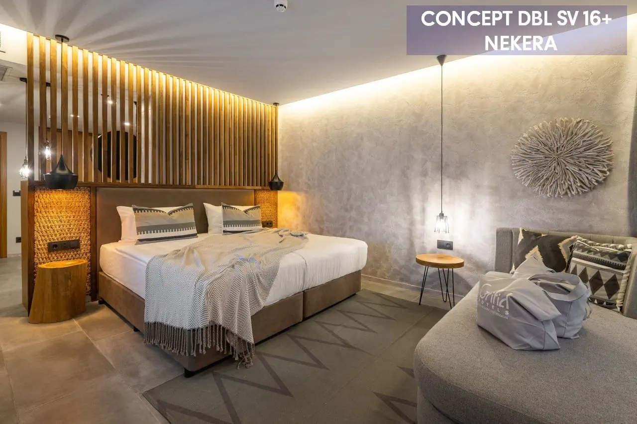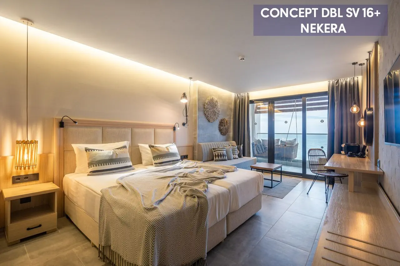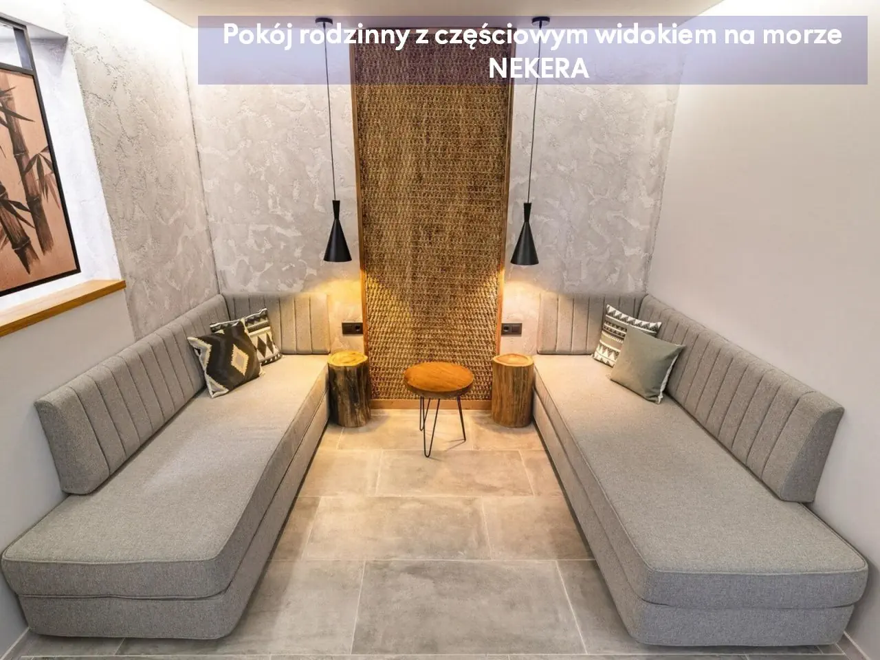 leżaki, materace i parasol/pokój (w miarę dostępności), bar plażowy (lokalne napoje 10:00–17:00)